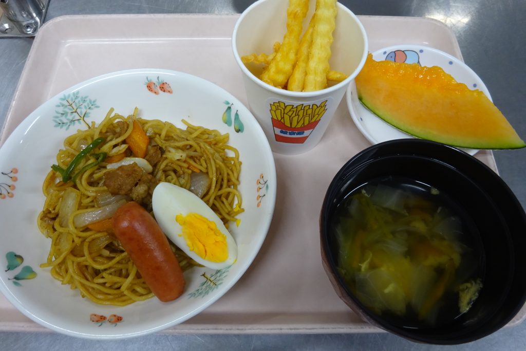 7/25(金)の浜保夏祭りでは給食で「焼きそば・ポテトフライ・野菜スープ・メロン」、おやつは「かき氷」を作りました![]()
