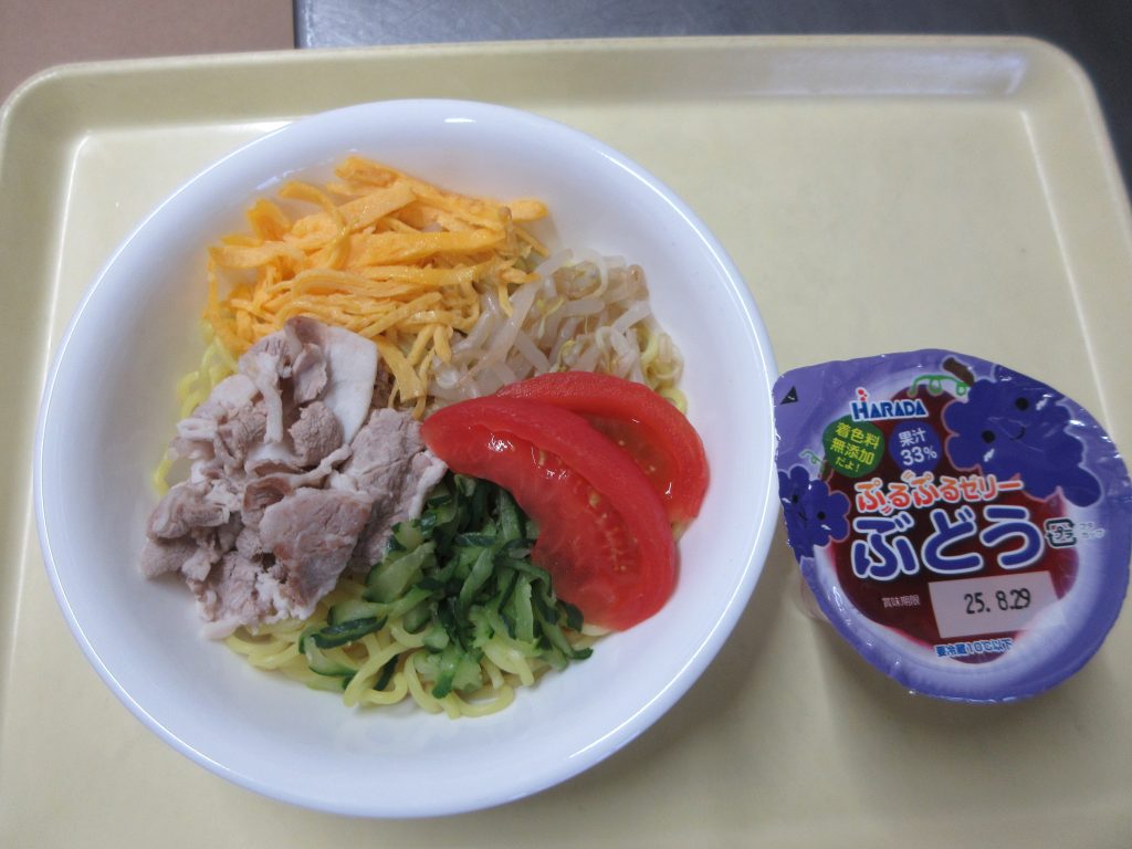 給食では「冷やし中華」、おやつは「おばけアイス」を作りました