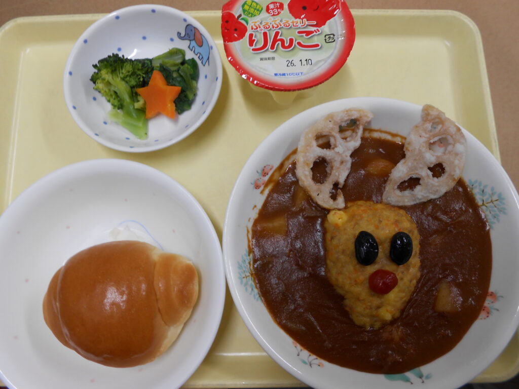 トナカイに見立て作ったハンバーグに子ども達は大喜びでした
