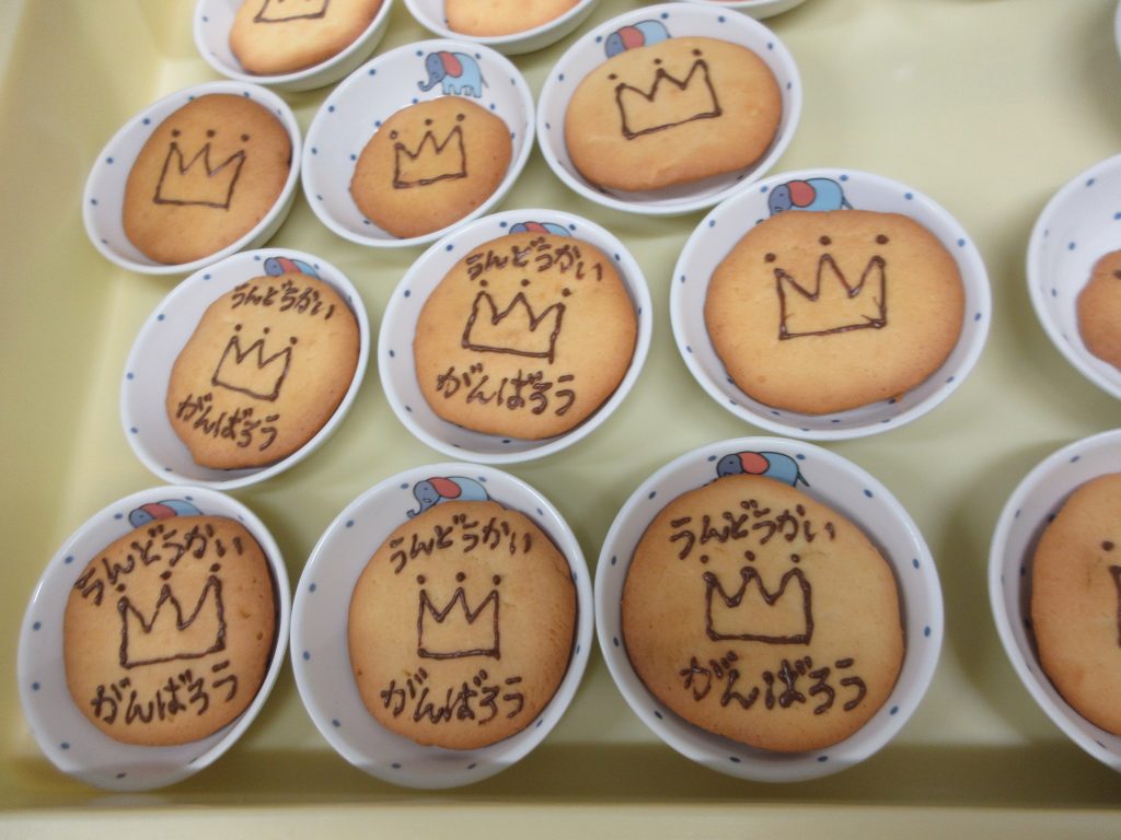 メダルクッキーには王冠や文字をチョコペンで書き、子ども達の気分を盛り上げました