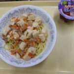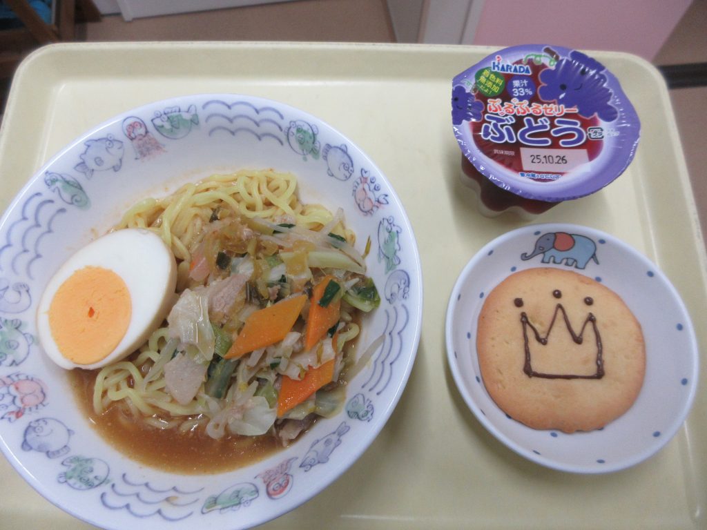給食は「味噌ラーメン・ゼリー」、おやつは「メダルクッキー」を作りました