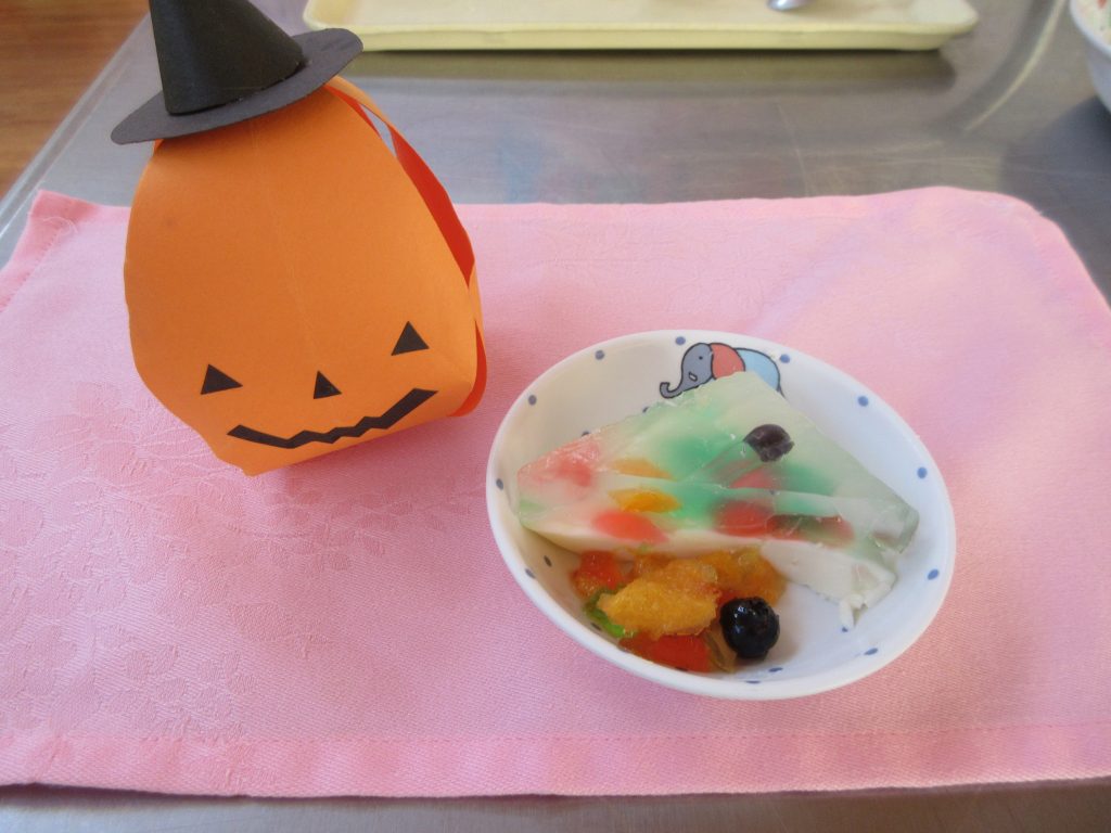 10/24(金)の誕生会では給食で「アンパンマンランチ・春雨スープ・セレクトゼリー」、おやつは「宝石箱」を作りました