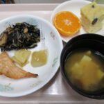 12/9(火)は給食で「鮭の田楽・ひじき煮・ごま豆腐・ハリハリ漬け・納豆汁・みかん」おやつは「黒豆蒸しパン」を作りました☺