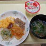 2月の食育ランドのテーマが“大豆”ということもあり、ひじきの炒め煮の中に『大豆』、おやつには『おから』など大豆を使ったメニューにしました