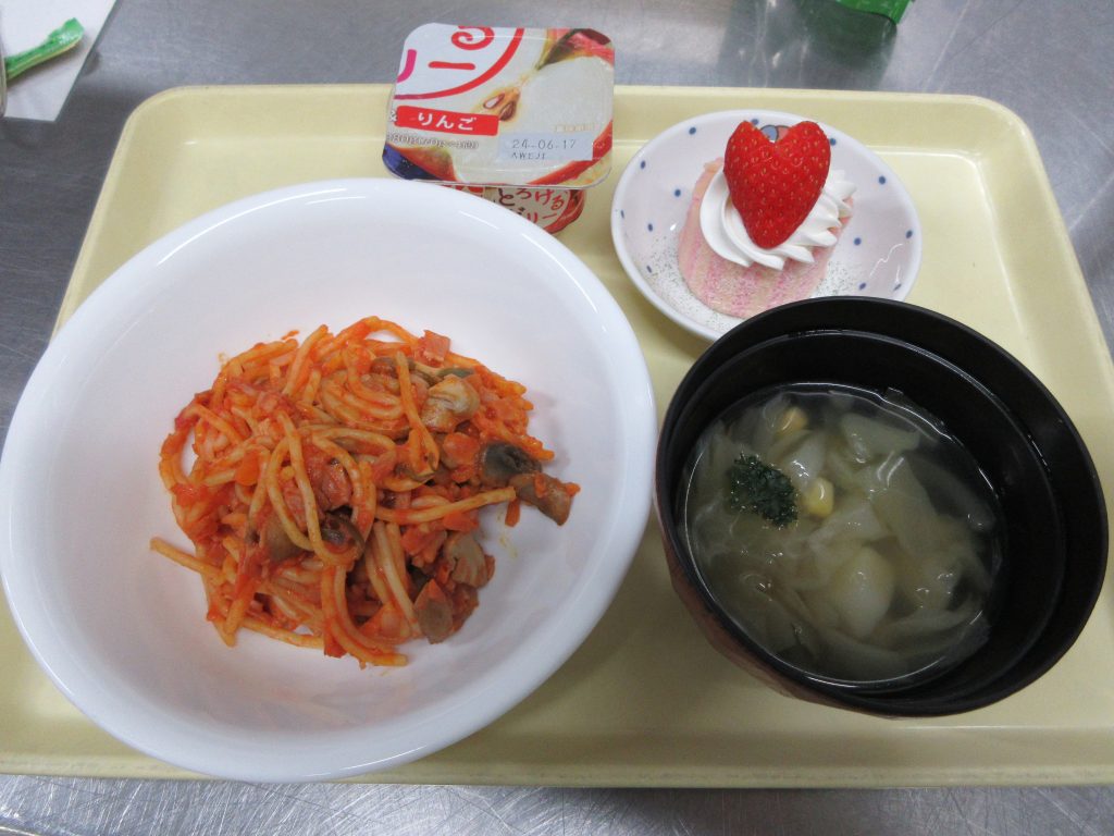 4/25(木)の誕生会では「ナポリタン・コーンスープ・