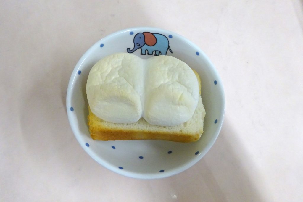 マシュマロトーストは、米粉パンの上にマシュマロをのせ、