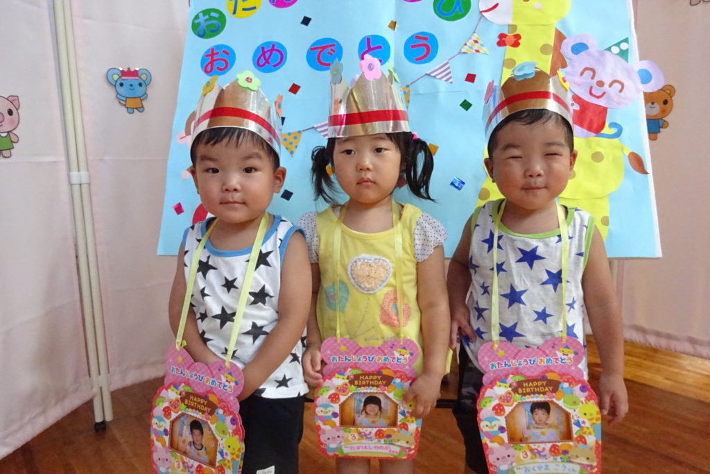 | 7月 | プール開き、七夕まつり、じゃがいも掘り(クッキング)、夏祭り、スイミング講習(年長組)、異文化交流(年長組) |