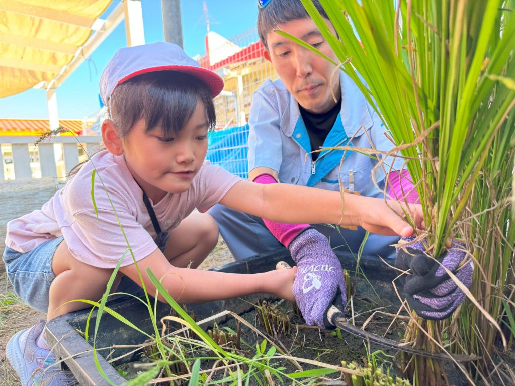 「お米が完成したらどうやって食べようかな~」と今からワクワクの子ども達です。