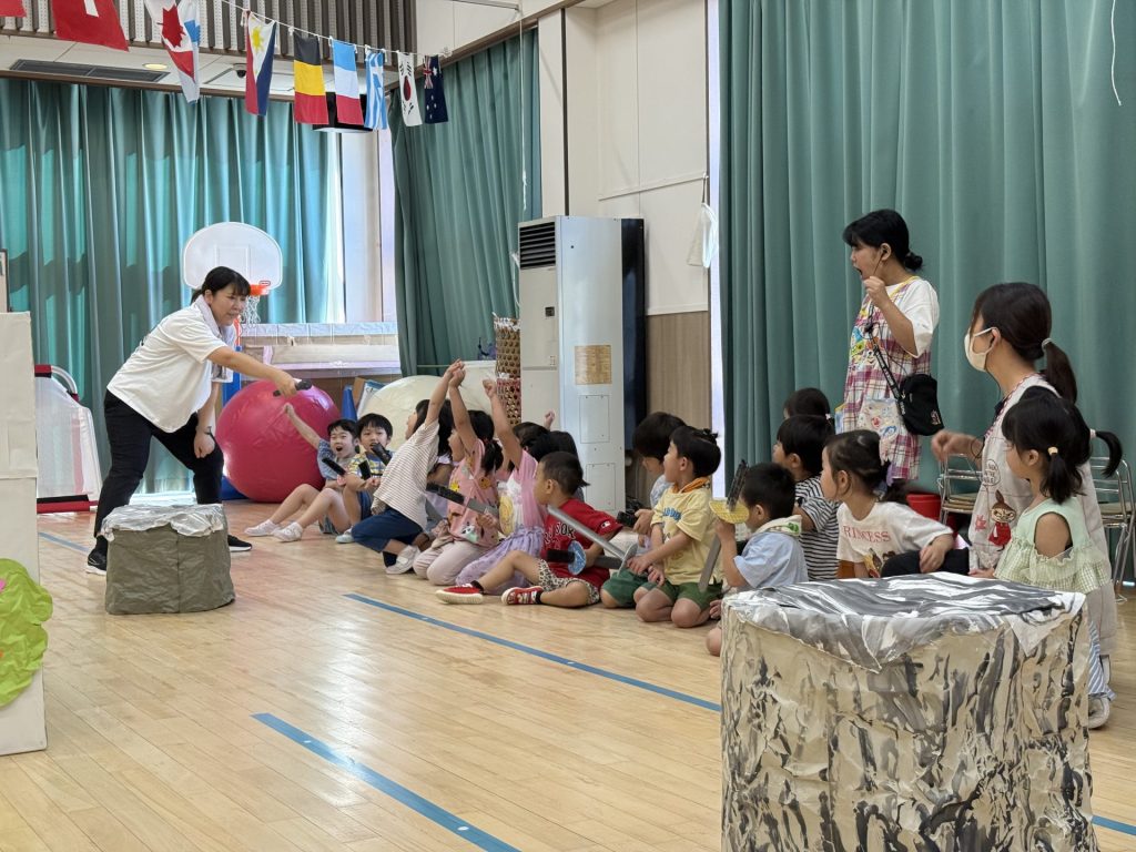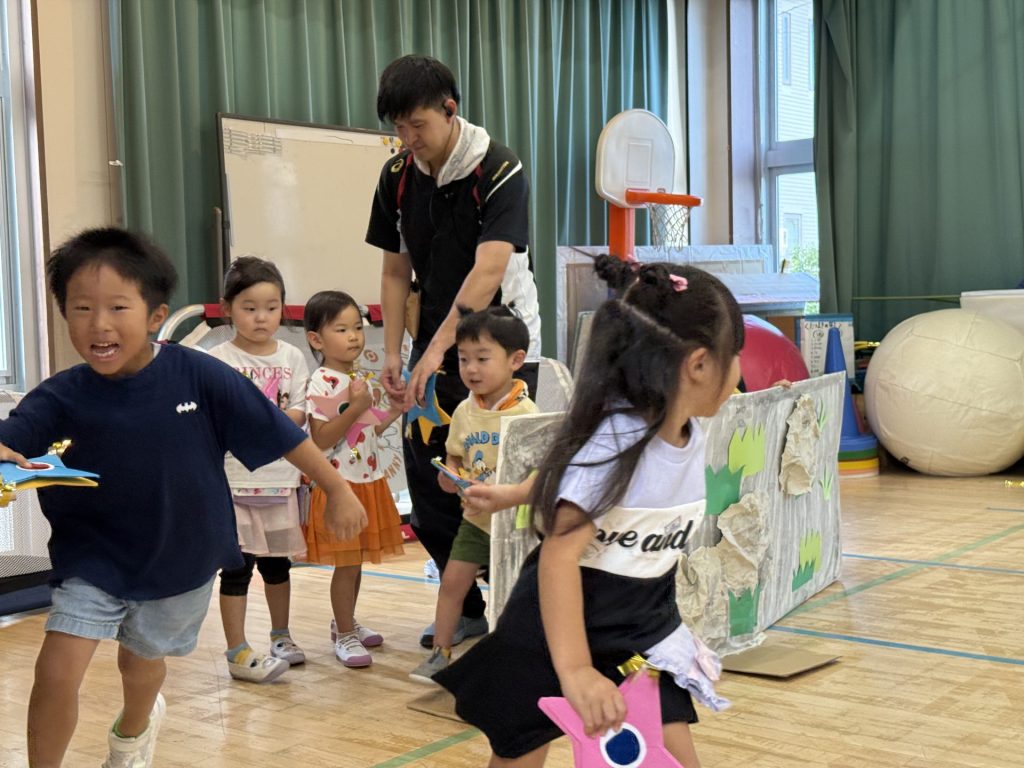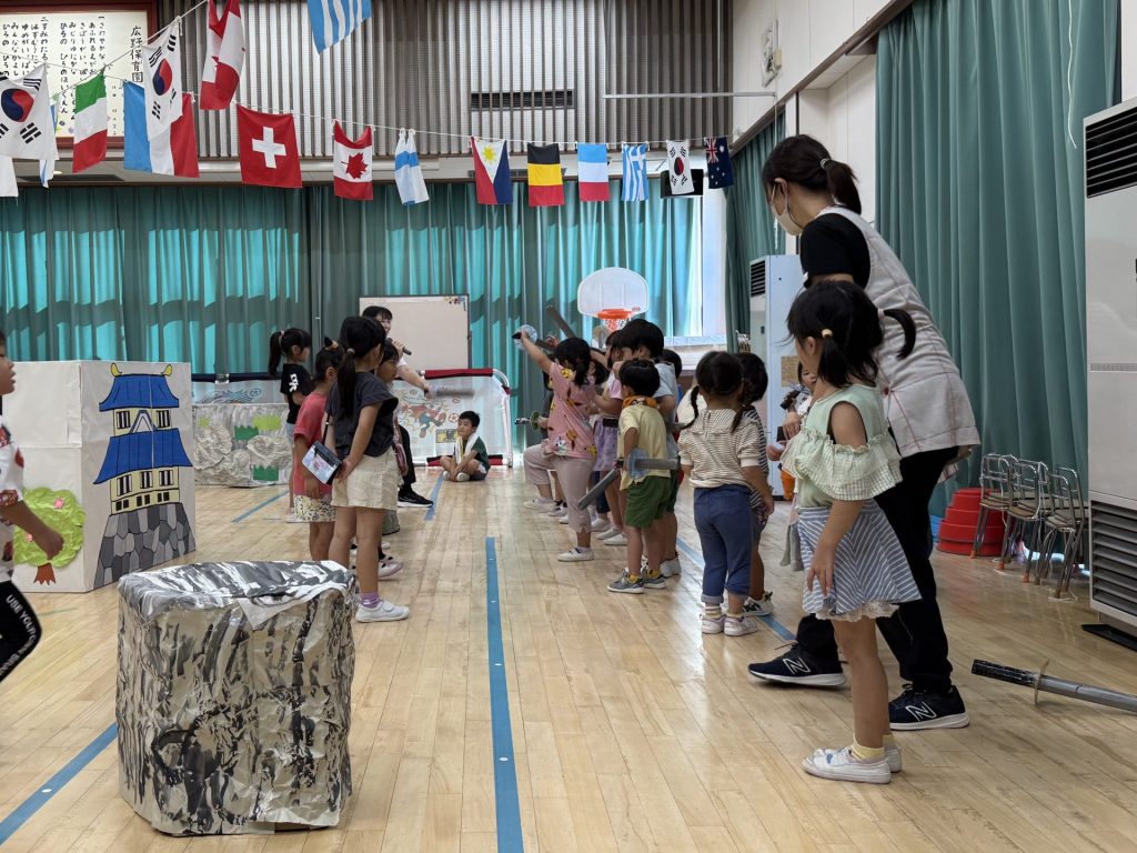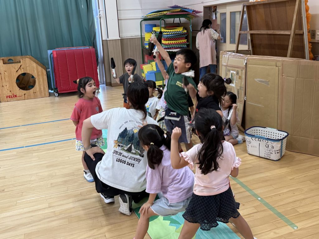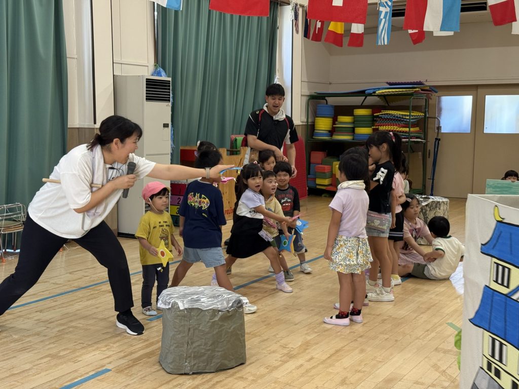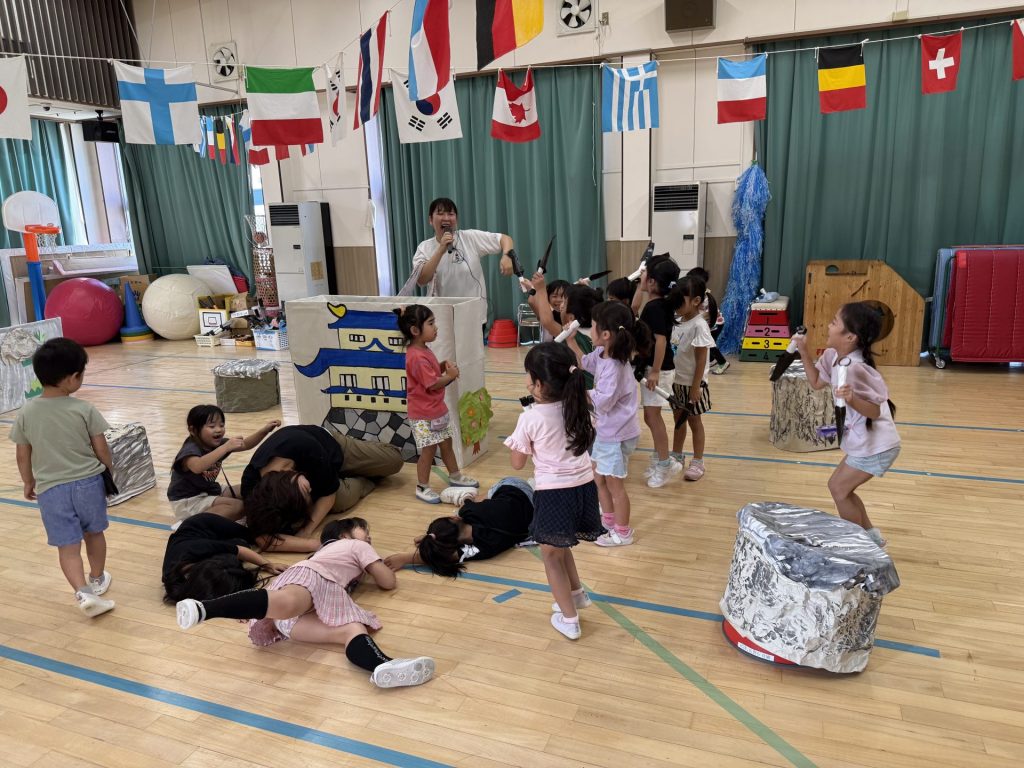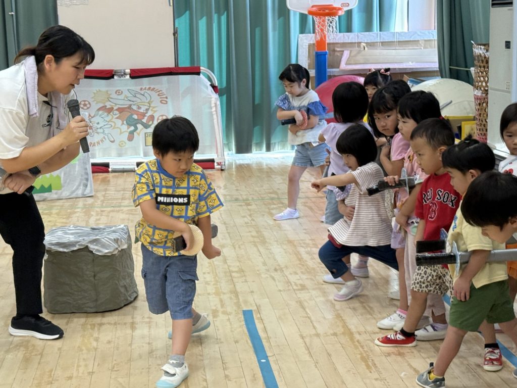 みんな楽しそうに、でも真剣にそれぞれの役になりきって表現しており、忍者を鼓舞する掛け声やどうすればかっこよく見えるかなど、子ども達が一生懸命考えて作り上げていく姿も印象的でした。