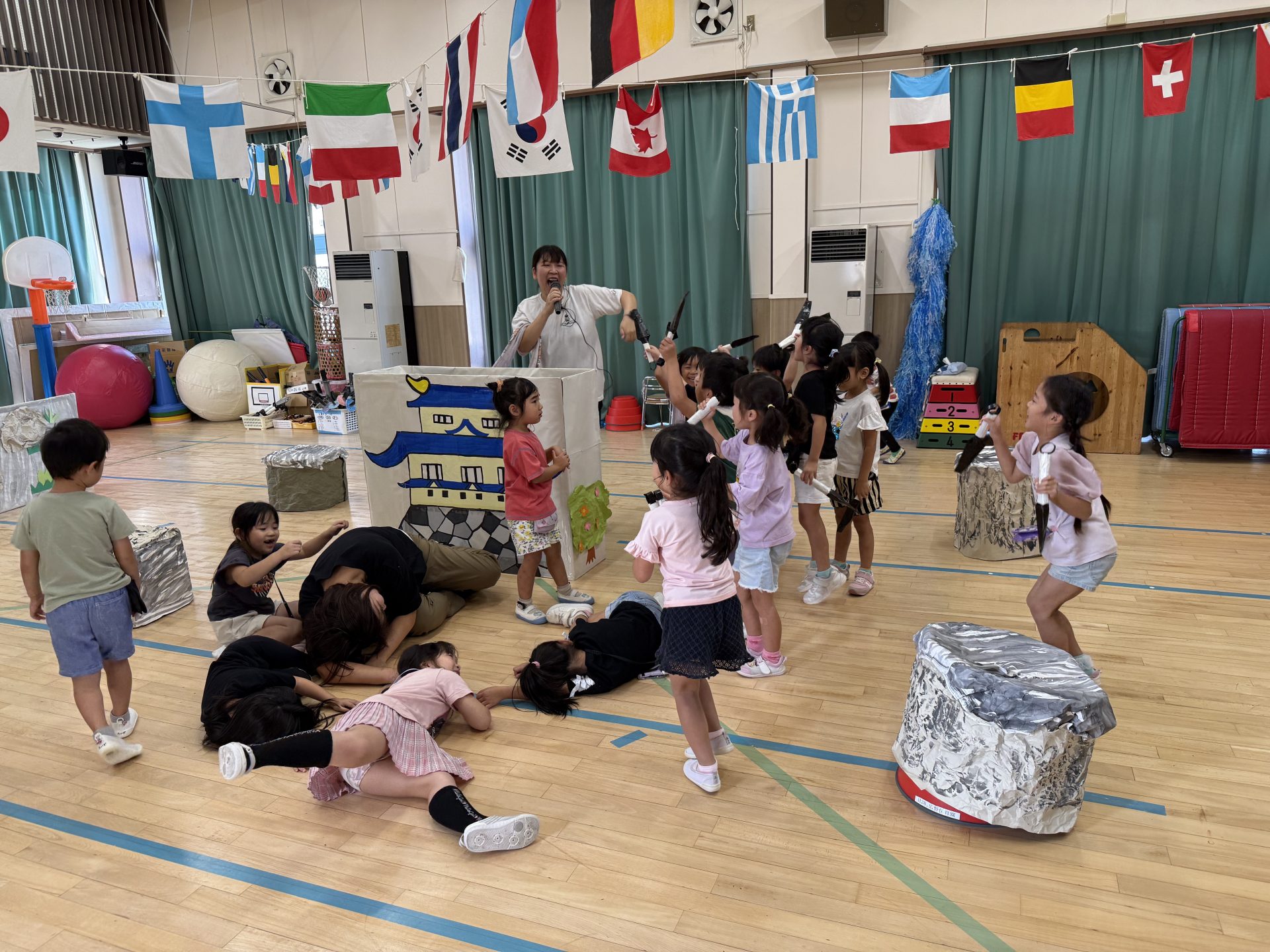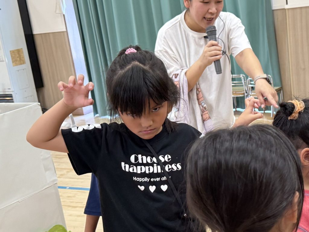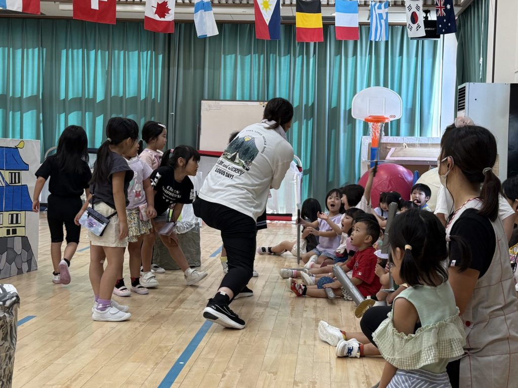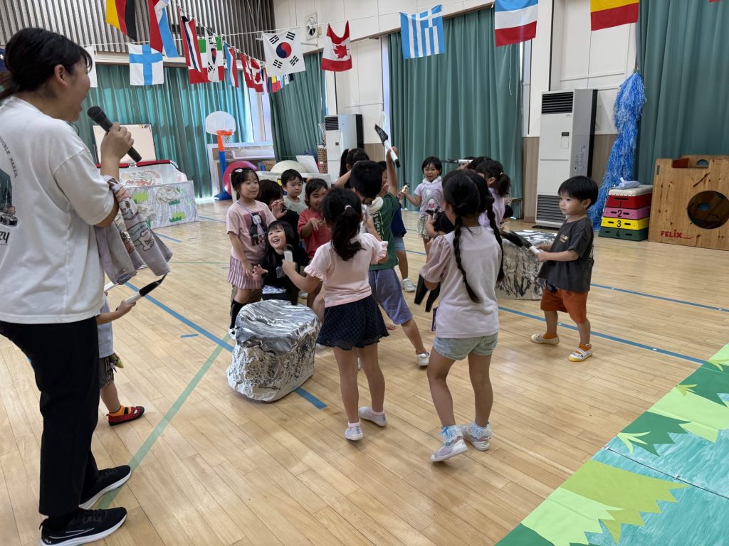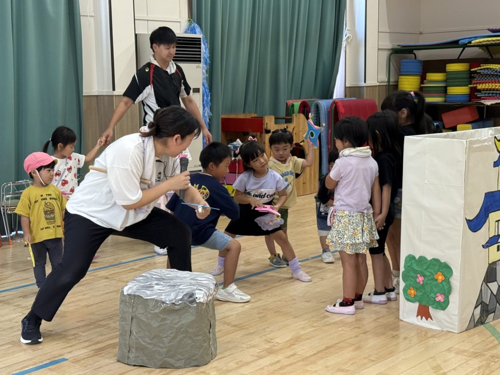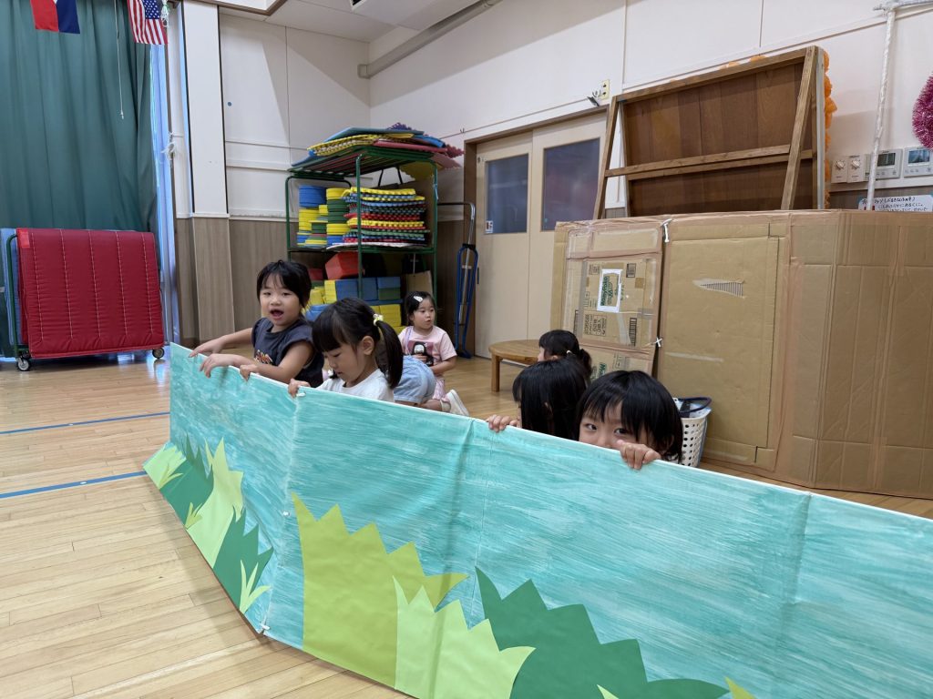 みんな楽しそうに、でも真剣にそれぞれの役になりきって表現しており、忍者を鼓舞する掛け声やどうすればかっこよく見えるかなど、子ども達が一生懸命考えて作り上げていく姿も印象的でした。