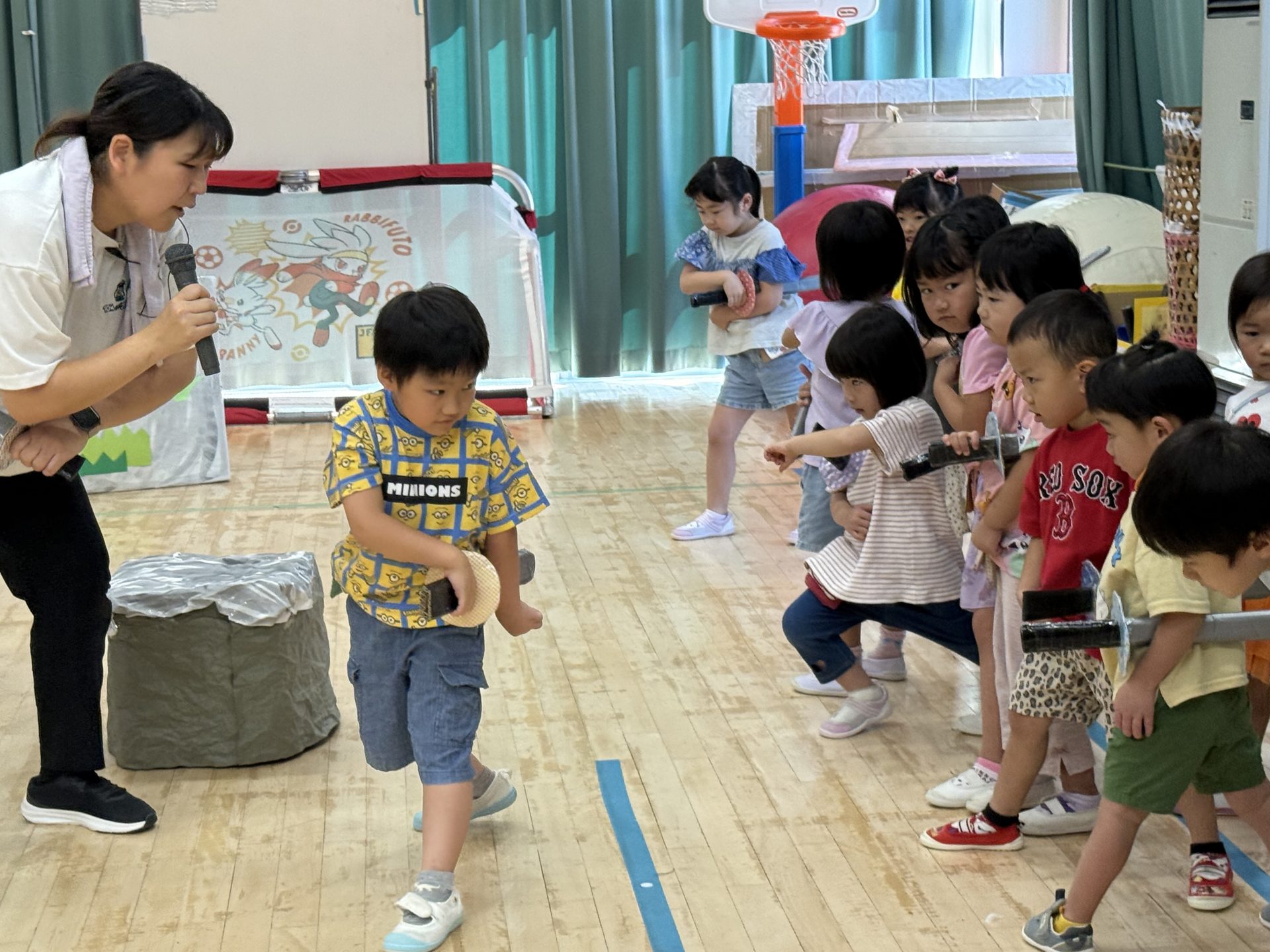 そこで、表現遊び「わんぱくちびっこ忍者!参上!」のリハーサル風景をちょっとだけお見せします✨