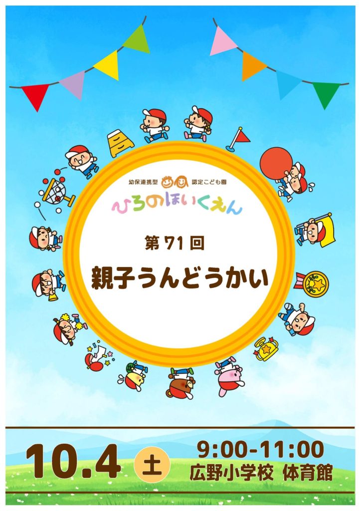 朝晩の気温差が大きく、体調を崩すお子さんが増えています。調節しやすい服装や十分な睡眠をとるなどして体調管理に気をつけ、みんなで親子うんどうかいを楽しみましょう