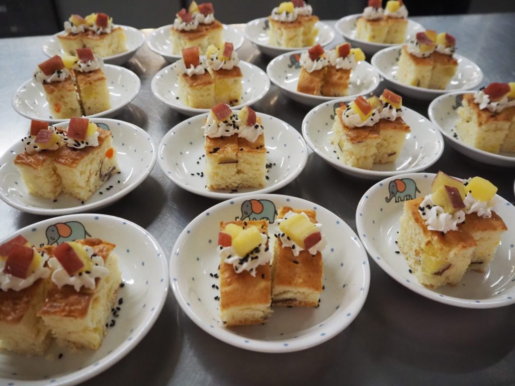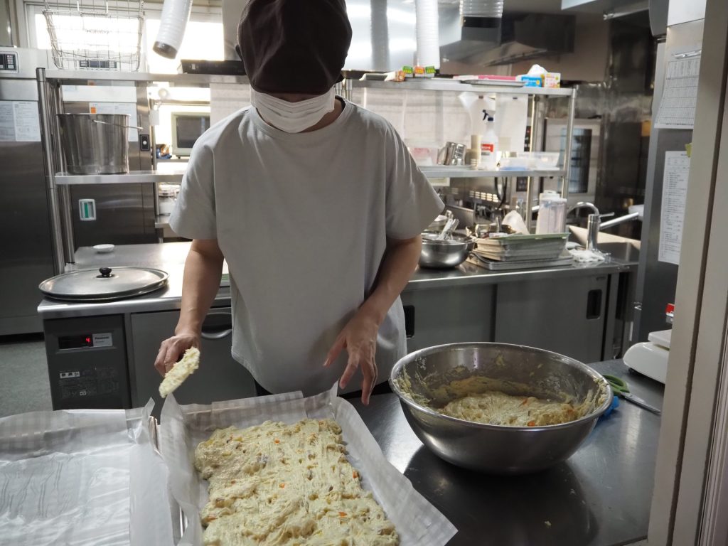 調理さん達のおやつ作りが始まりました❣ 今日は「おいも🍠のケーキ」です。
