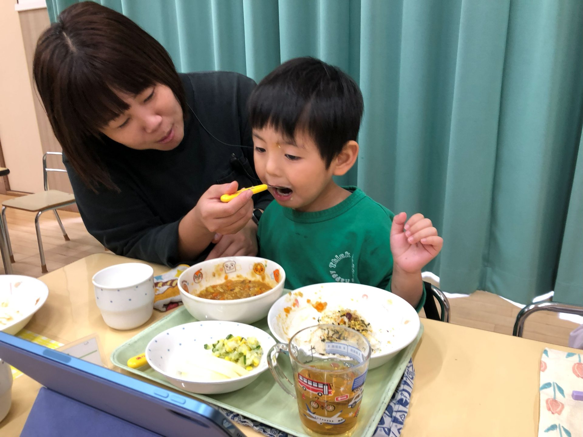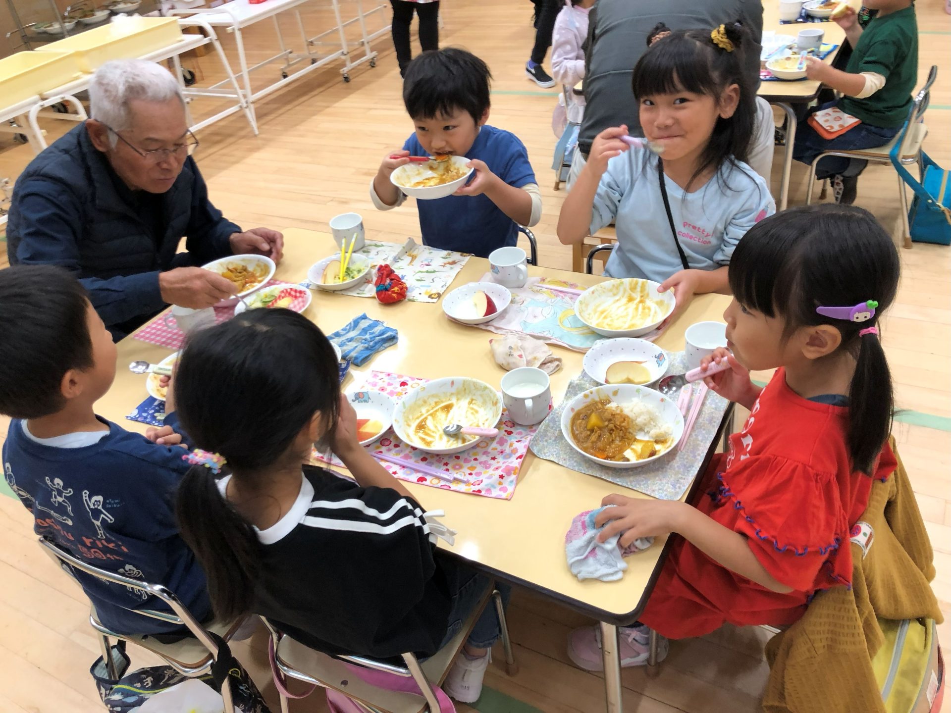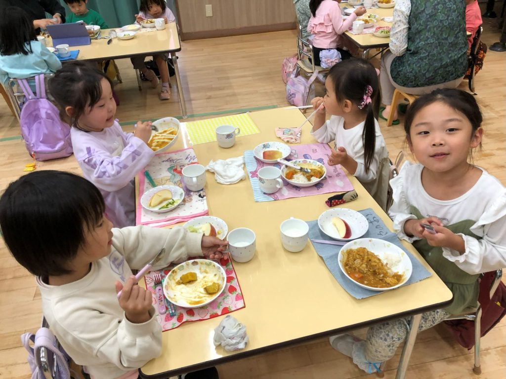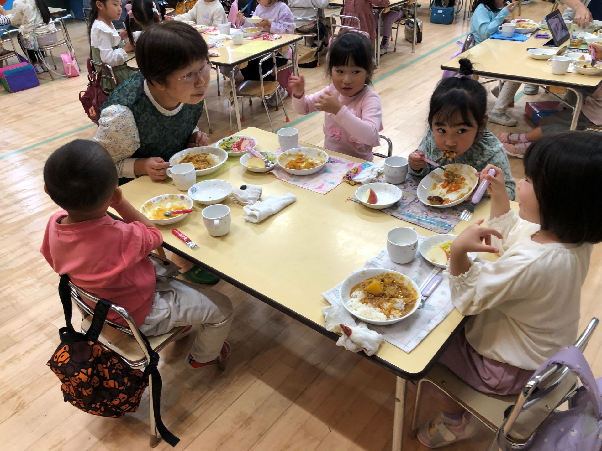 会食会では、自分たちで切ったり剥いたりしたということもあり、とっても喜んで食べていました🍛「これ、私が切ったにんじんだよ!」「しめじいっぱいバラバラしたのー!」「玉ねぎを切ったとき目が痛かった~💧」など、クッキングの話を楽しむ子ども達でした