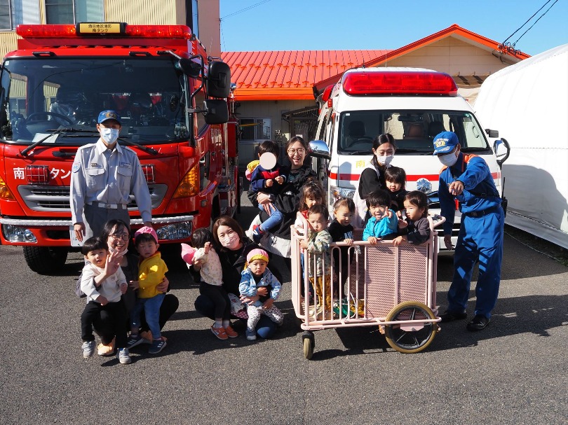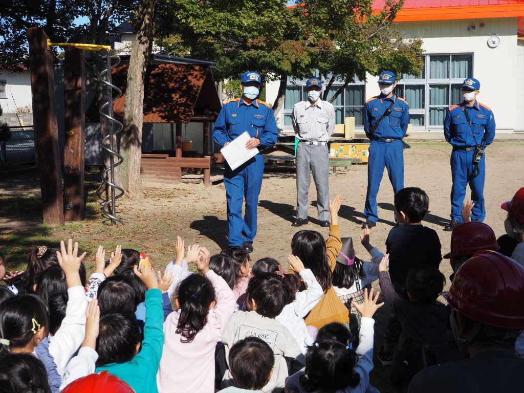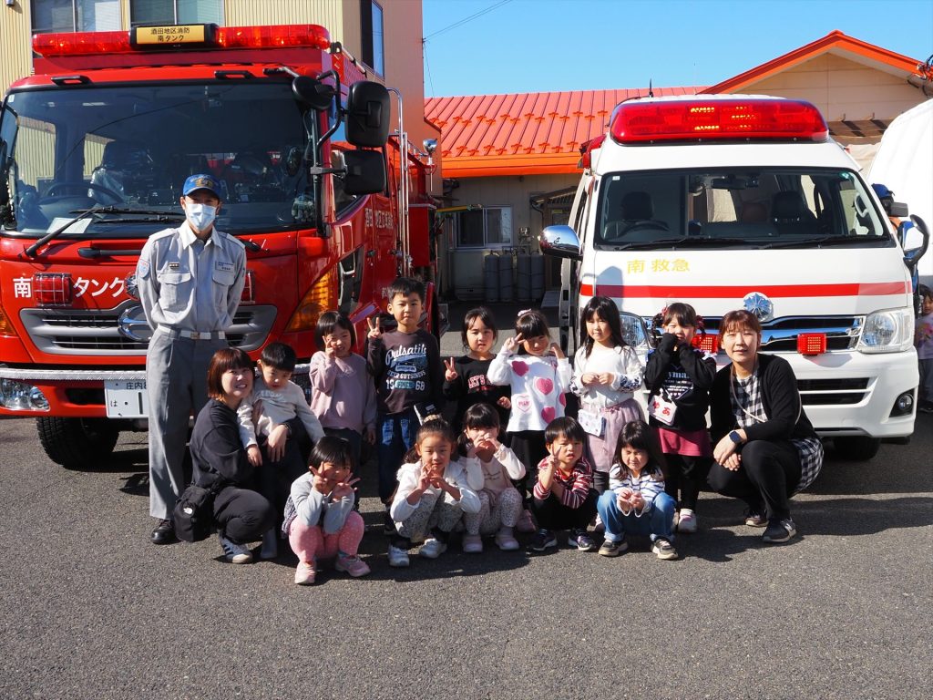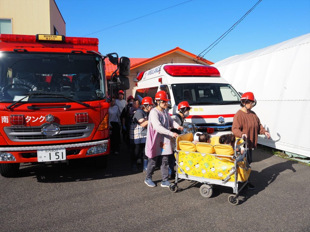 消防士さんから避難の仕方を直接教えてもらい、子ども達も職員も命を守る為の大切な避難の仕方を改めて学ぶ機会となりました。酒田消防南分署の消防士さん救命救急士さんありがとうございました。