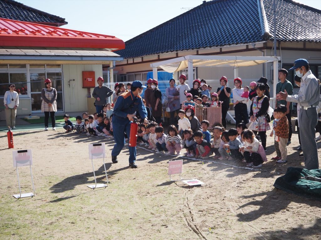皆上手に避難できたことと、火事の時は煙を吸わないように口を押さえて、体を低くして壁を触りながら避難することを教えてもらいました。子ども達は真剣に話を聞いていました。