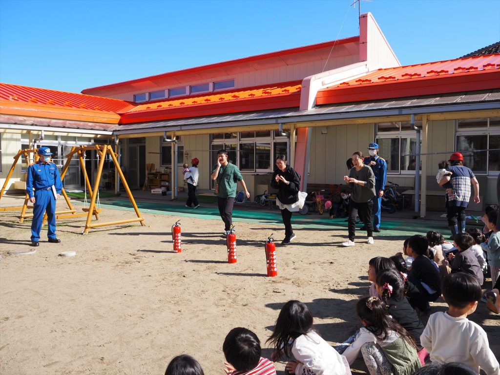 本日、消防士さんが来園しての総合避難訓練がありました。