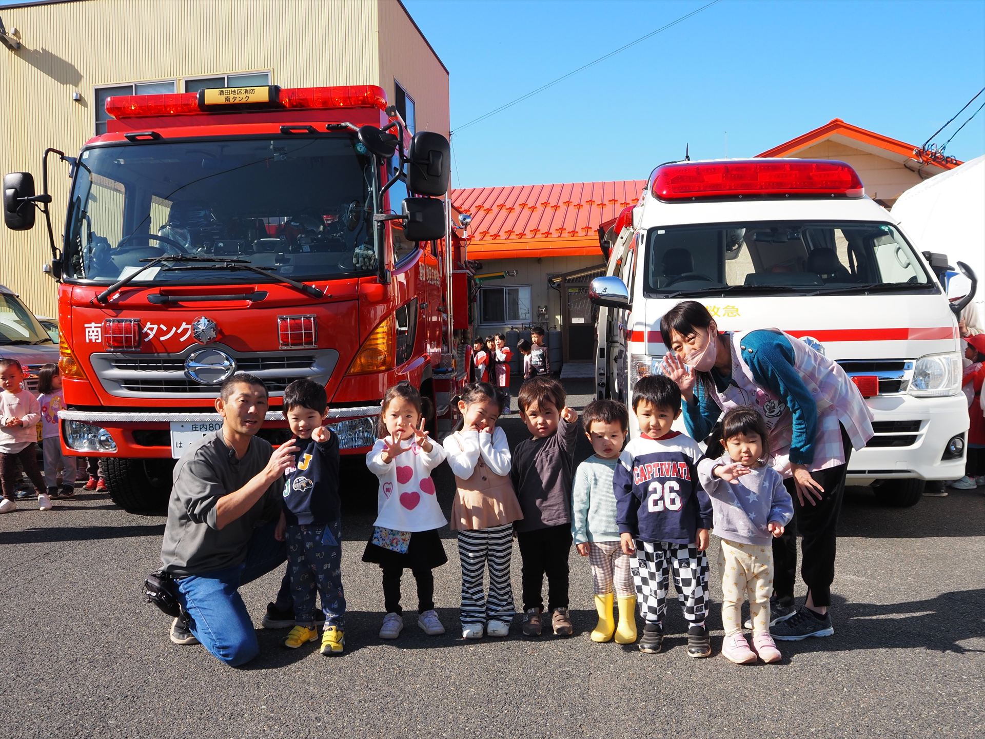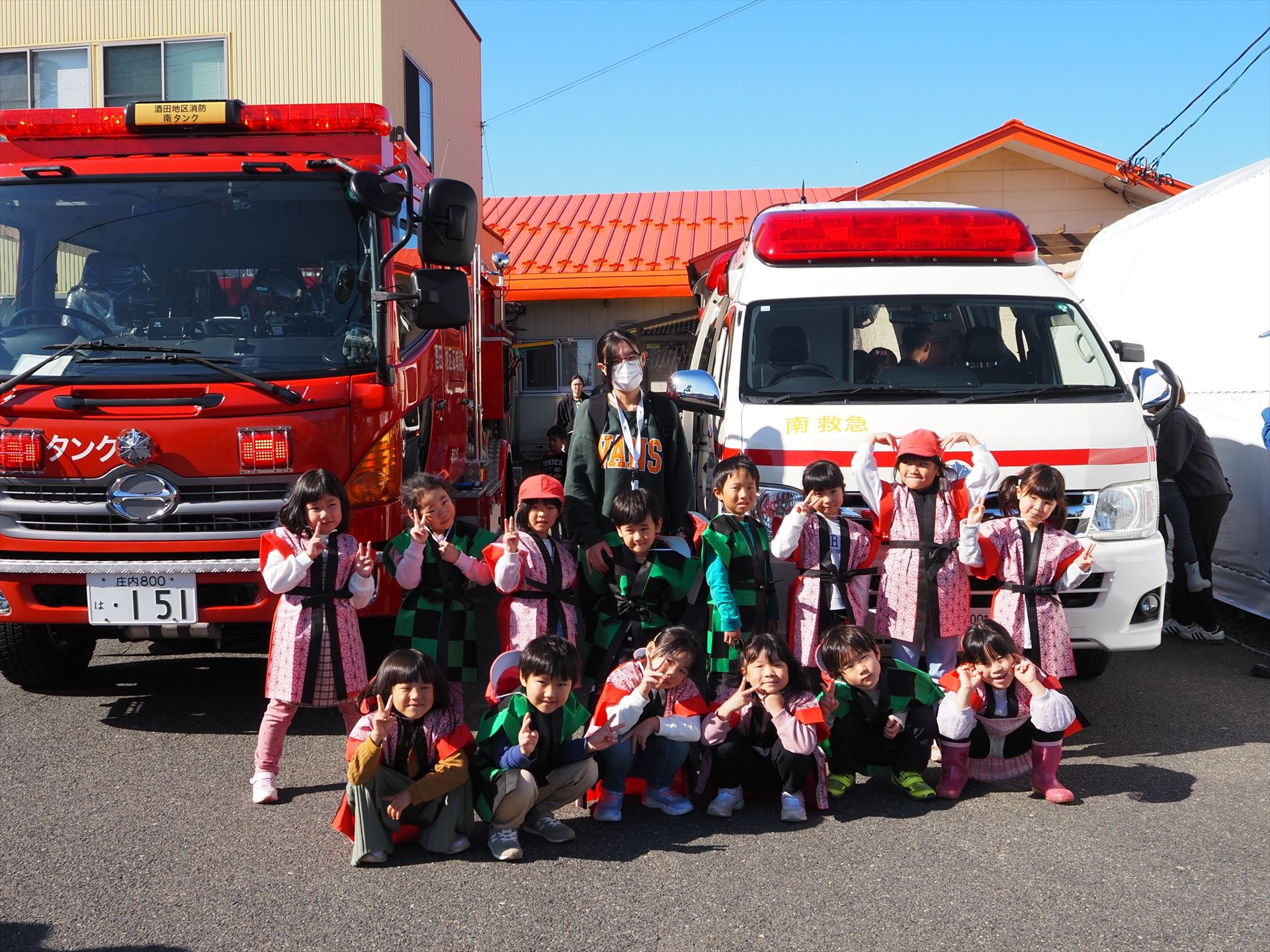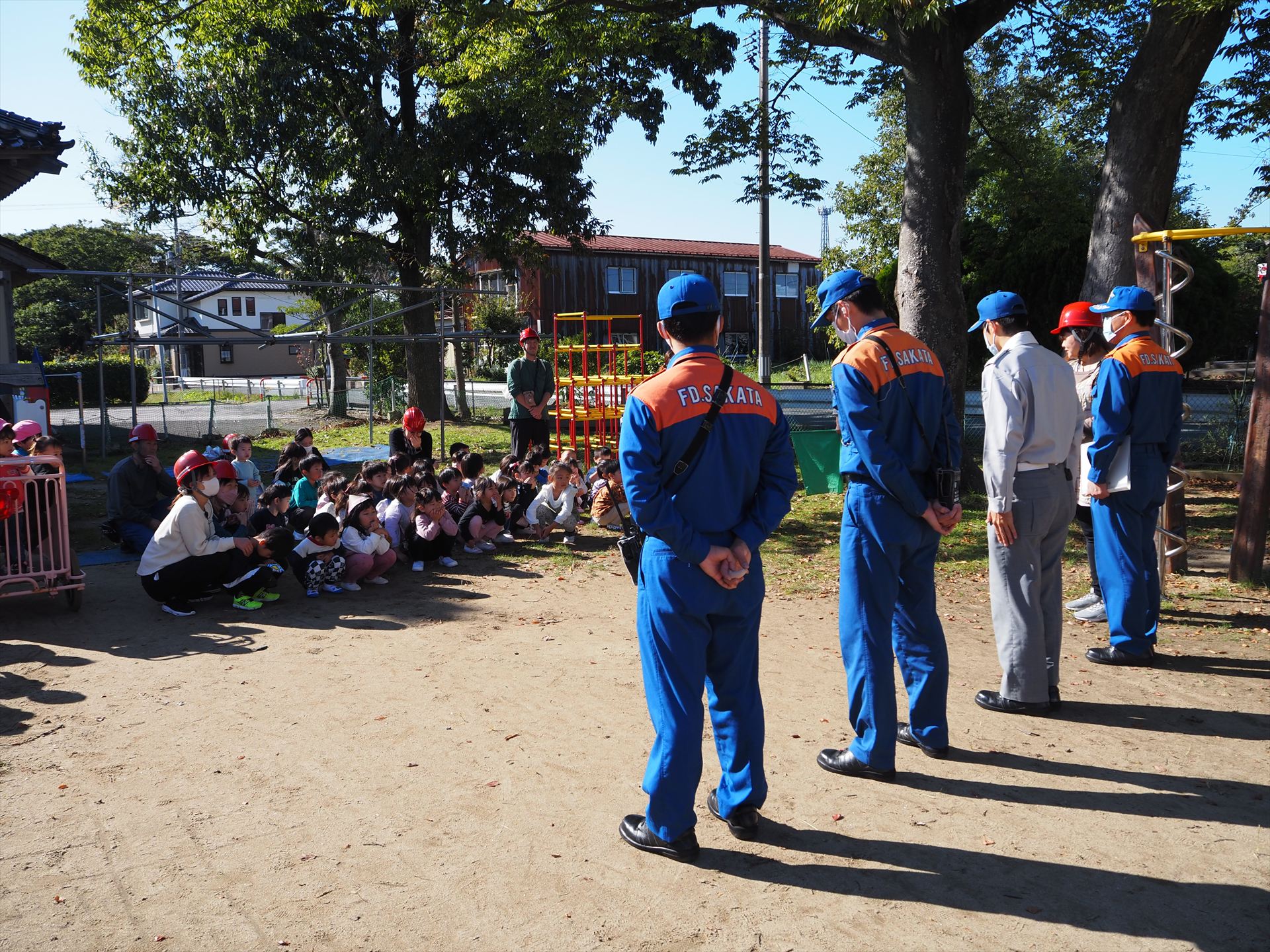 消防士さんから避難の仕方を直接教えてもらい、子ども達も職員も命を守る為の大切な避難の仕方を改めて学ぶ機会となりました。酒田消防南分署の消防士さん救命救急士さんありがとうございました。