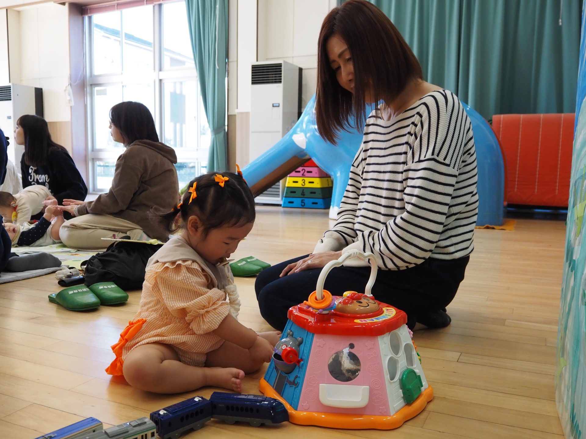 会場の遊戯室だけでなく、園内どこで遊んでも構いません。園庭で遊んだり、同年齢の在園児と一緒に遊んだり、発達に合った遊び、興味に合った遊びをご用意させていただきます。未就園児のお子さんとそのご家庭の方は、お気軽にご参加くださいね☺