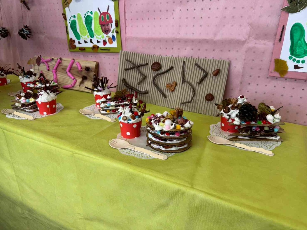 毎年、園からは秋の自然物を使った子どもたちの作品を展示しています。