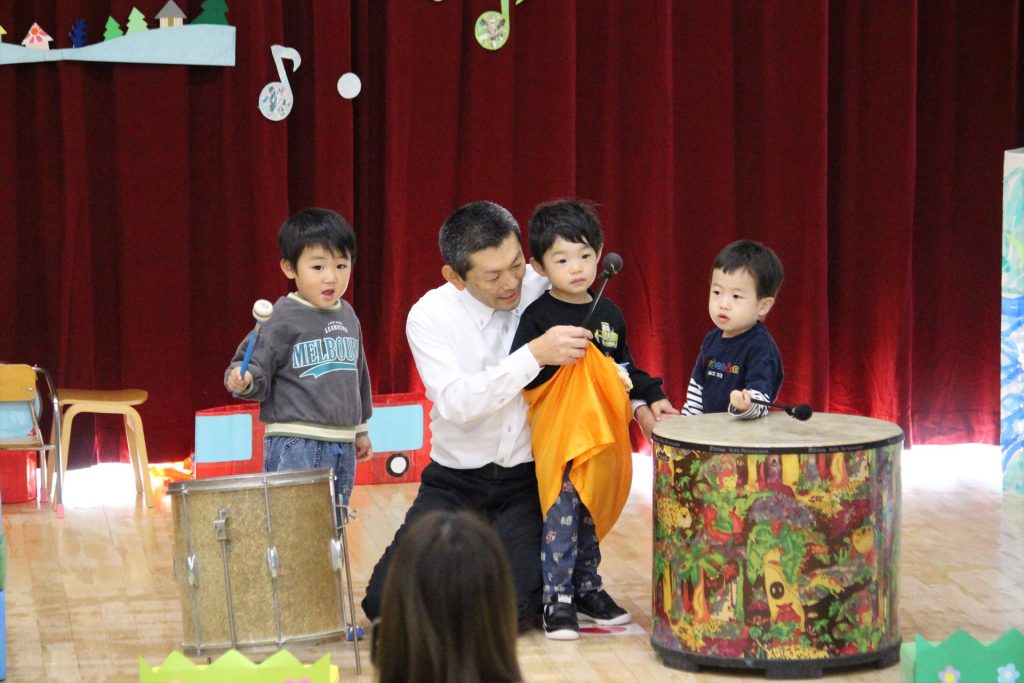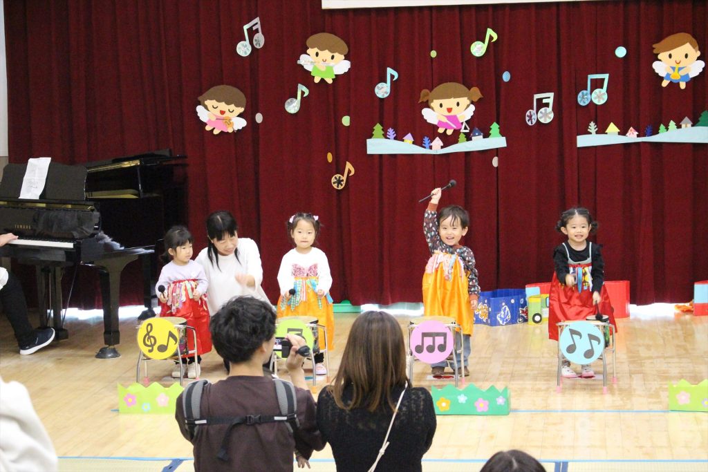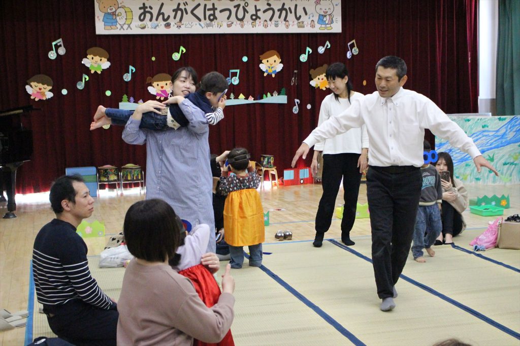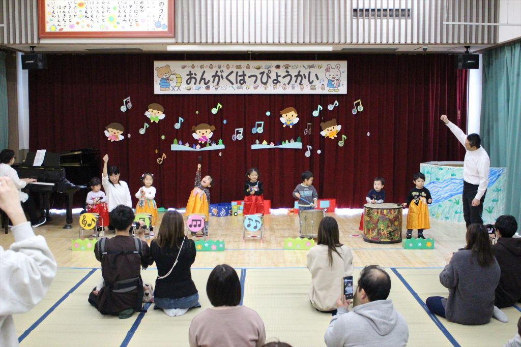入場からふれあい遊びまでは、お家の方々を見つけ、そっちに行きたい気持ちがある中でも、お客さんの前で発表する姿に桜組さんの成長を感じました。来年の音楽発表会は舞台が希望ホールへと変わります。今年の経験がきっと来年にもつながっていくのではないかと思います。