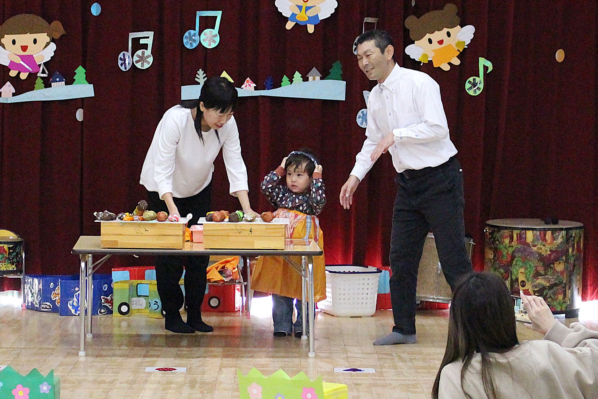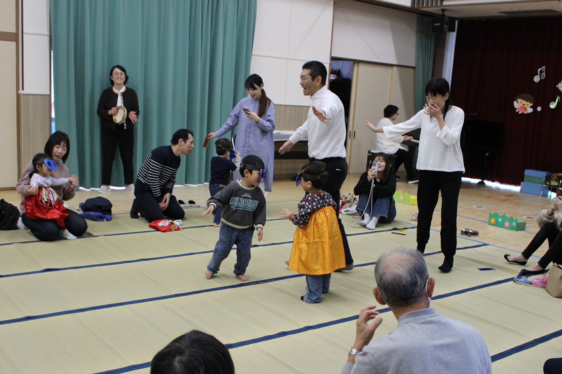 入場からふれあい遊びまでは、お家の方々を見つけ、そっちに行きたい気持ちがある中でも、お客さんの前で発表する姿に桜組さんの成長を感じました。来年の音楽発表会は舞台が希望ホールへと変わります。今年の経験がきっと来年にもつながっていくのではないかと思います。