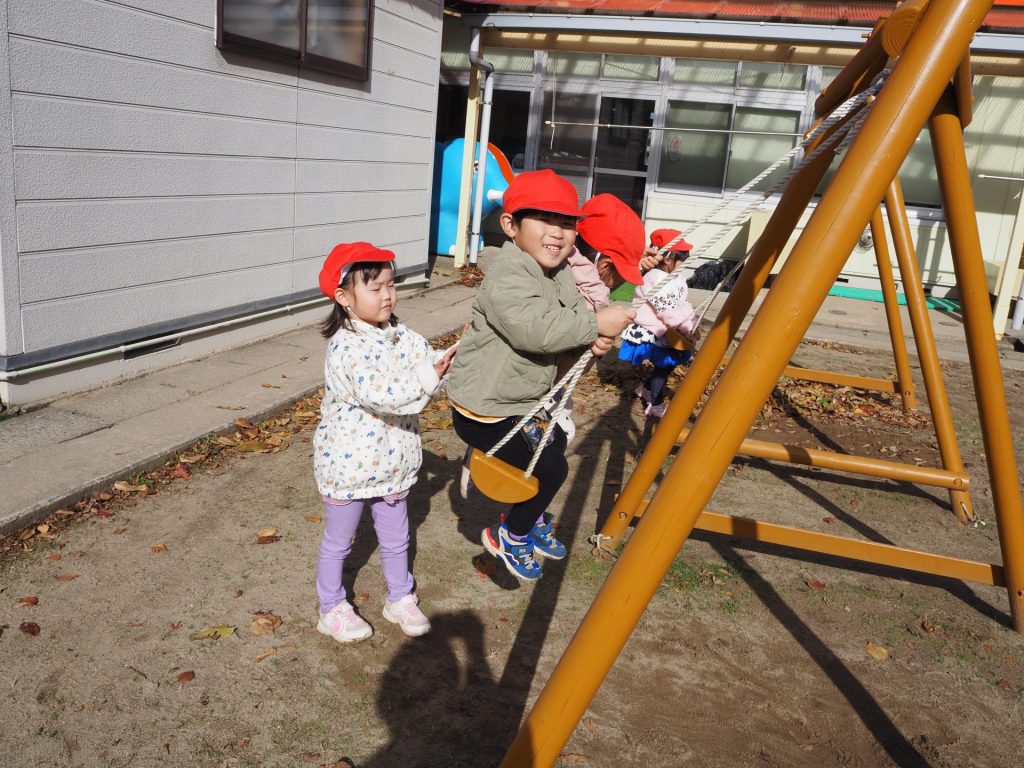 松組のNちゃんは桜組さん達のブランコ遊びのお手伝いを買って出てくれています![]()