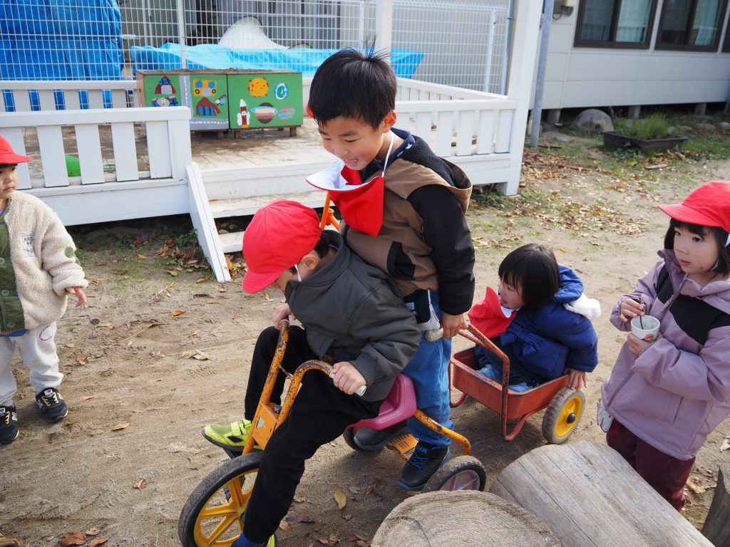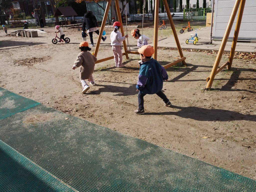 そして、大きいひよこ組さん達は園庭に繰り出しています![]()
