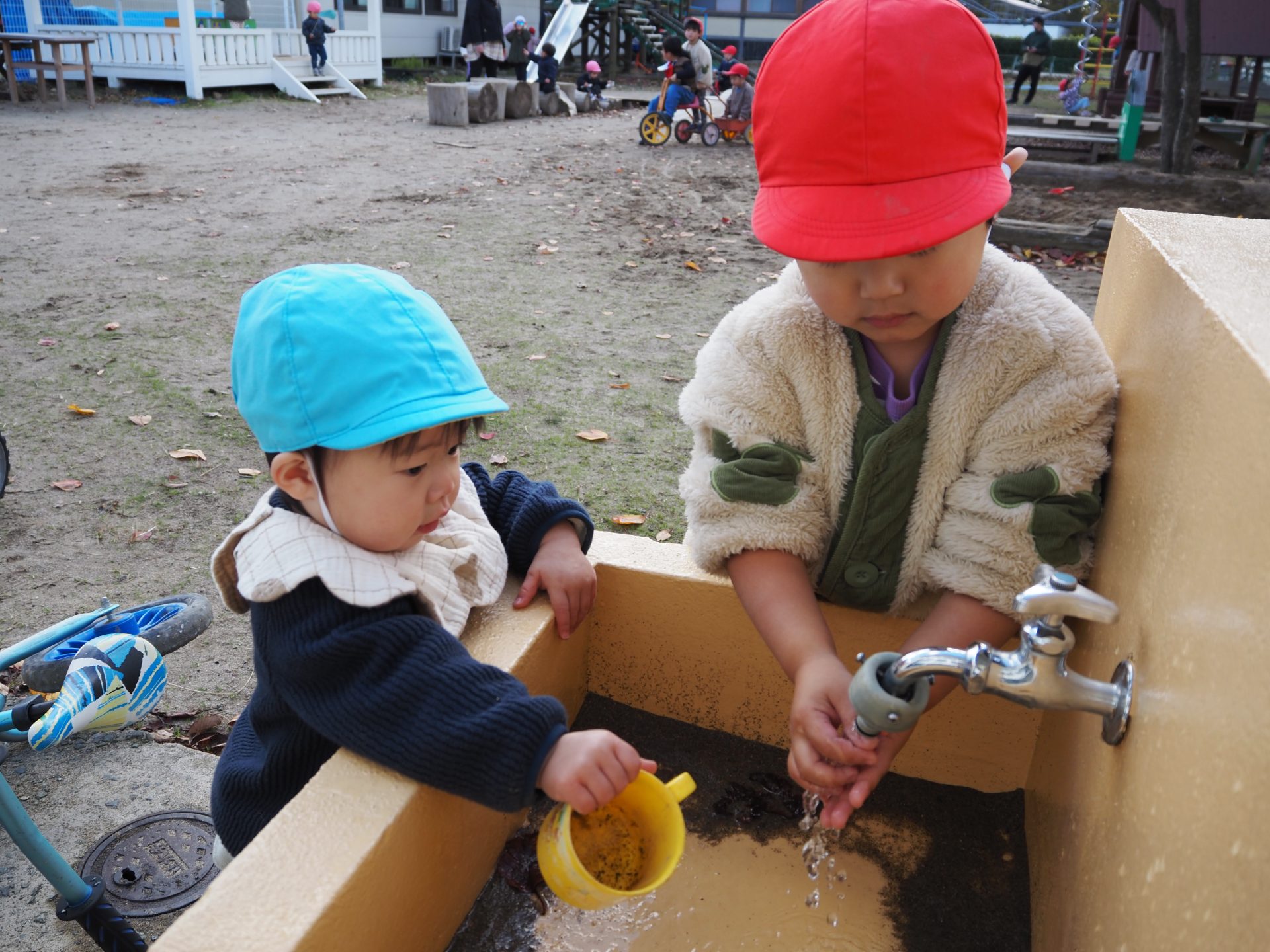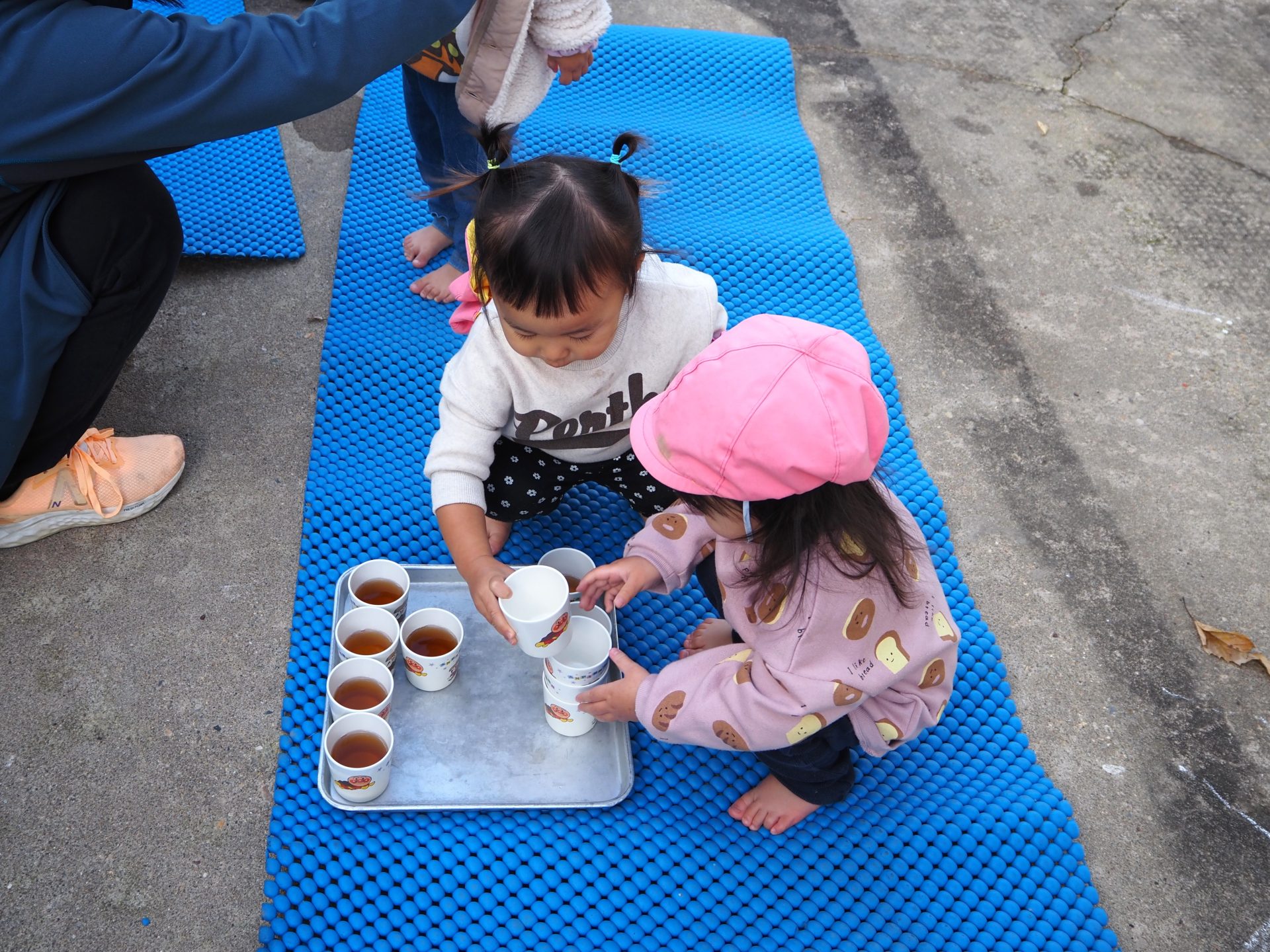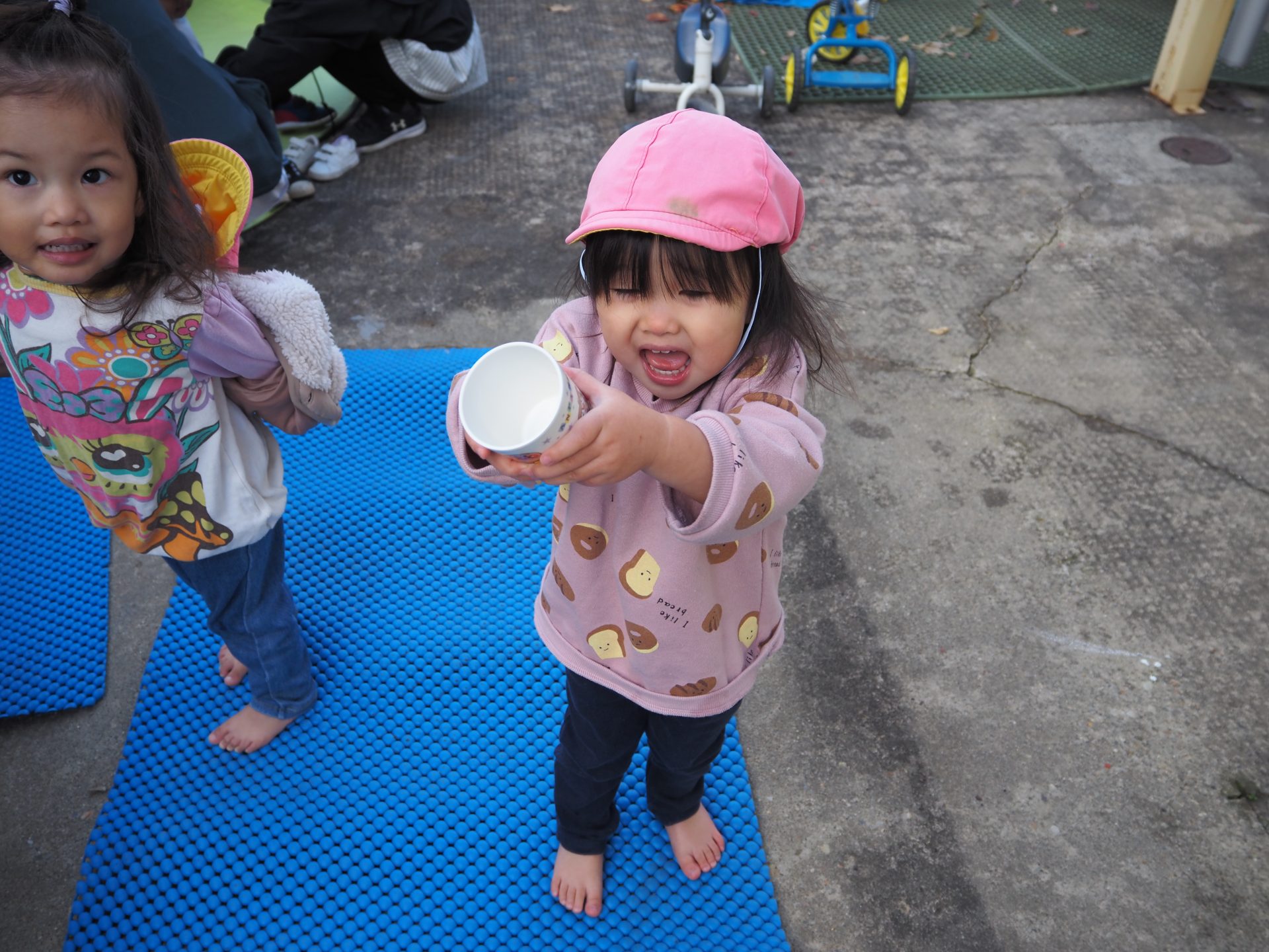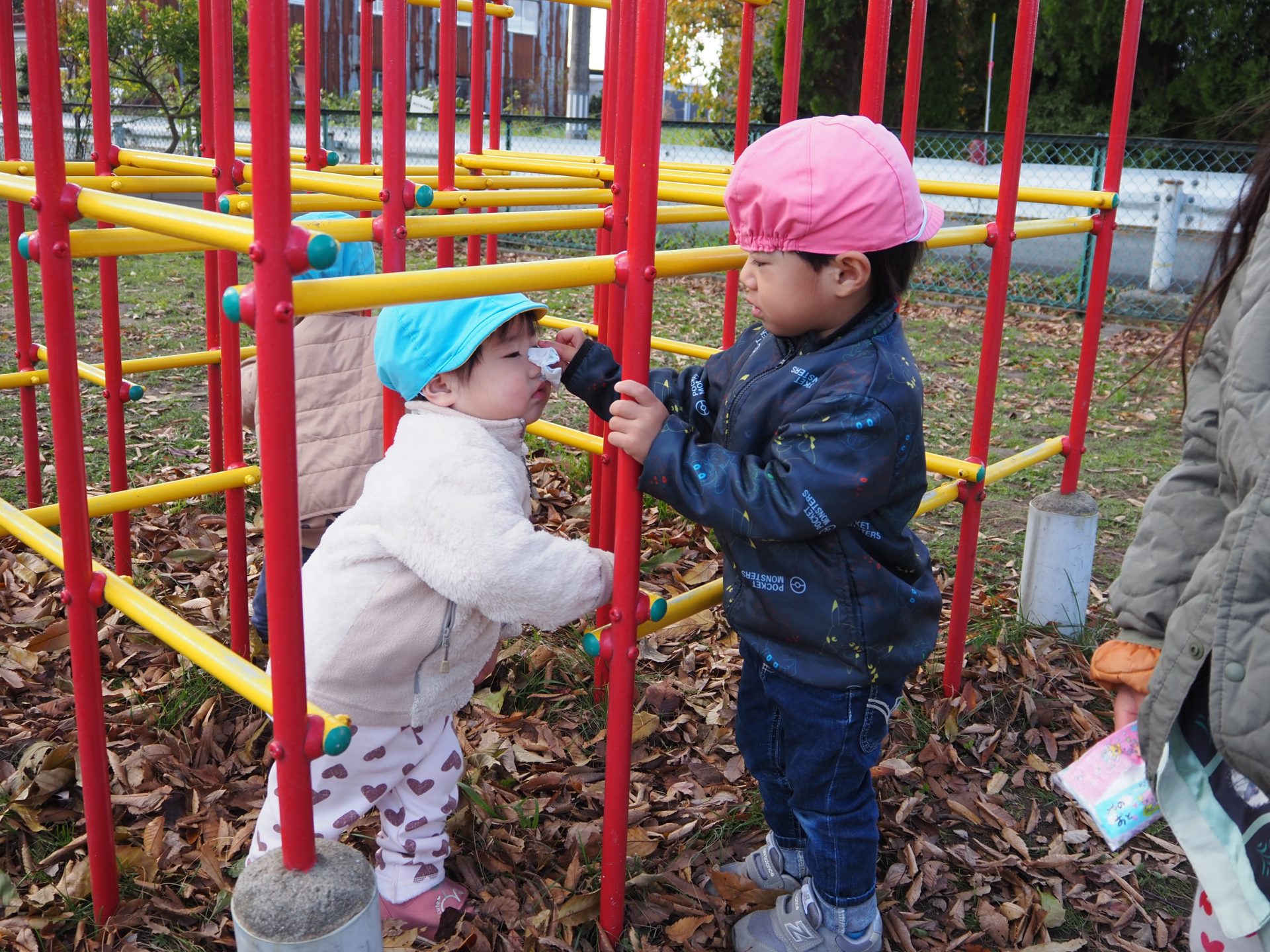 園庭では、ひよこ組さんの鼻水に気づいた桃組さんが、梅組のお姉さんから貰ったティッシュで鼻水を拭いてくれていました😊💕