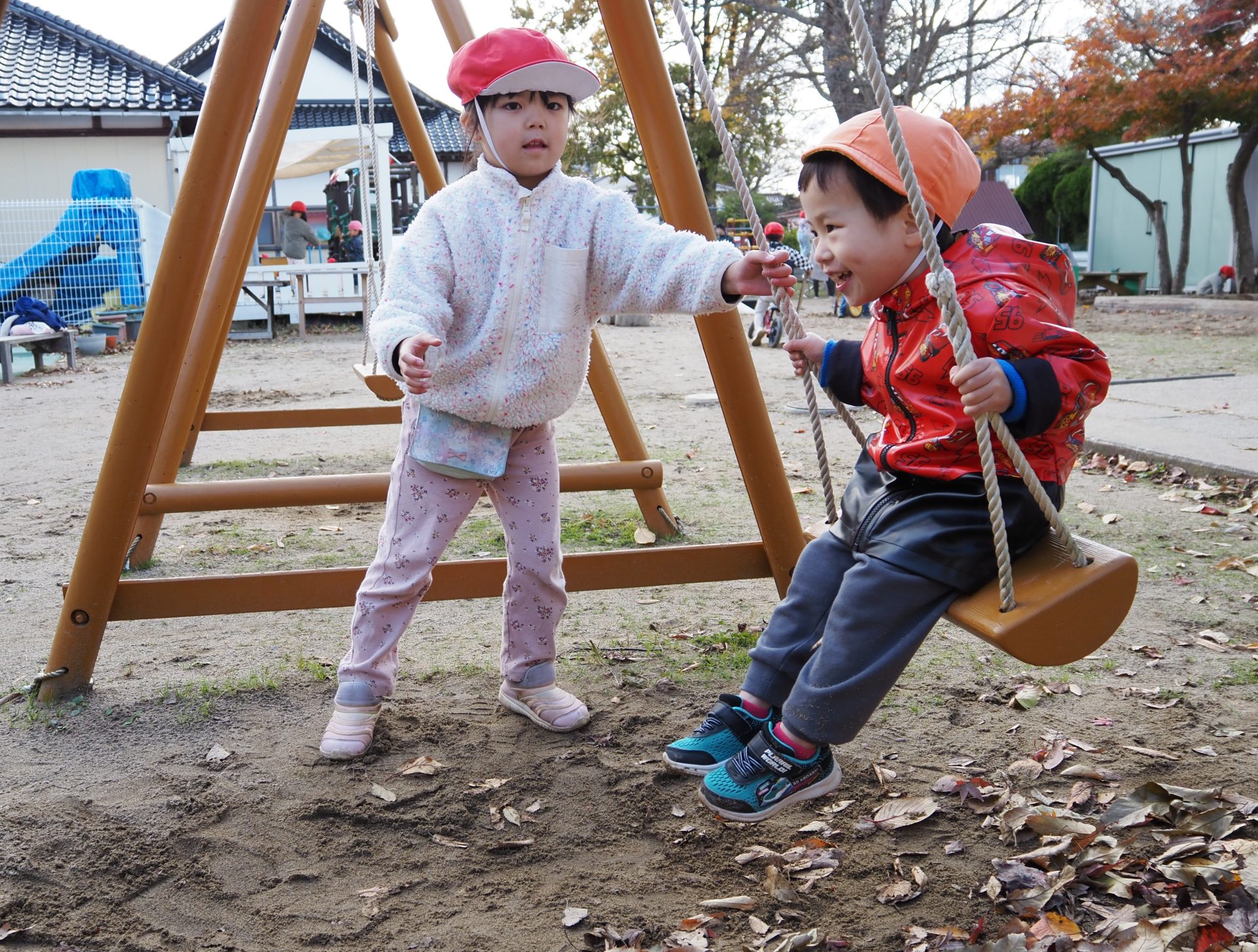 松組のNちゃんは桜組さん達のブランコ遊びのお手伝いを買って出てくれています![]()