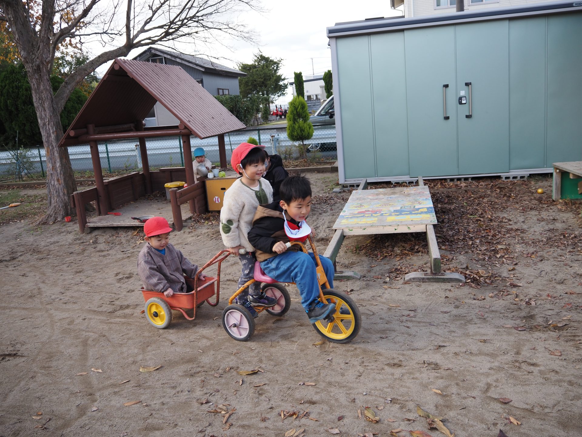 そして、大きいひよこ組さん達は園庭に繰り出しています![]()