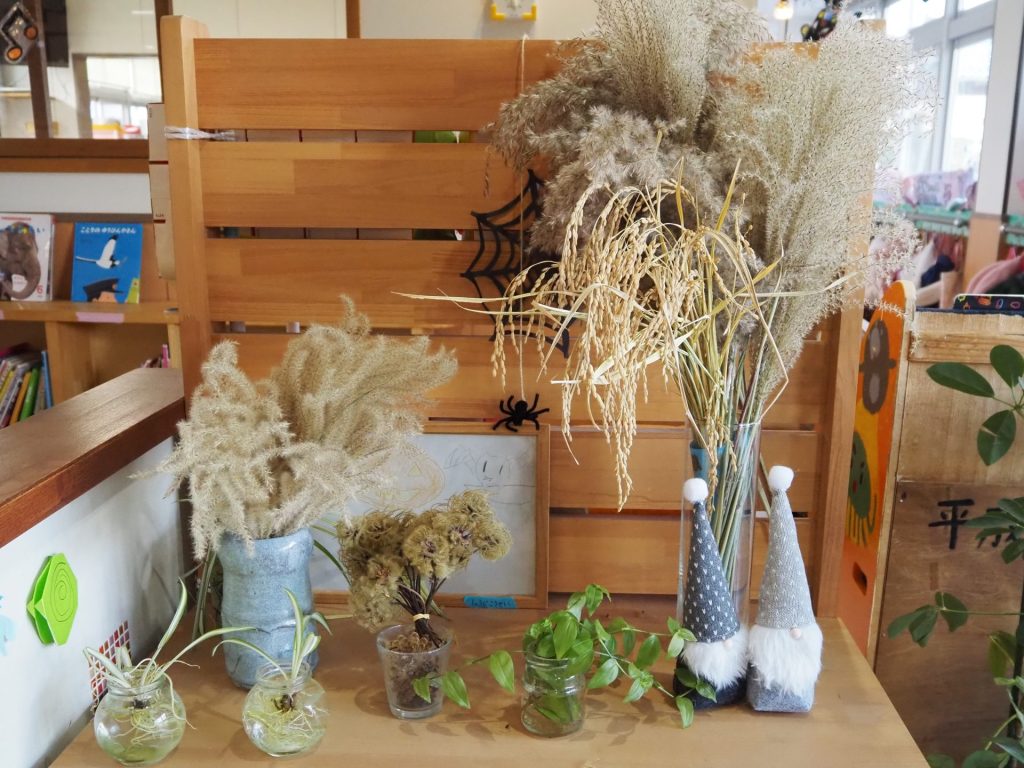 昨日からの寒気で一気に寒くなりましたが、こども園は秋でいっぱいです🍁