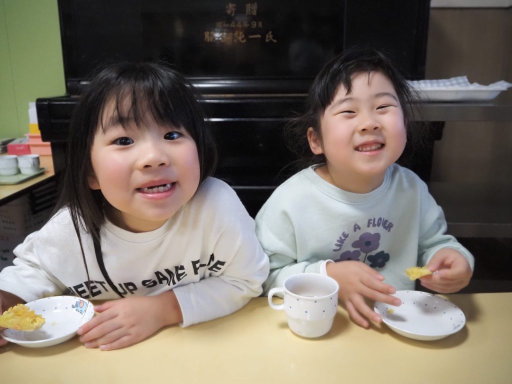 おやつは少し苦手な子もいましたが、みんなニコニコで食べていました。