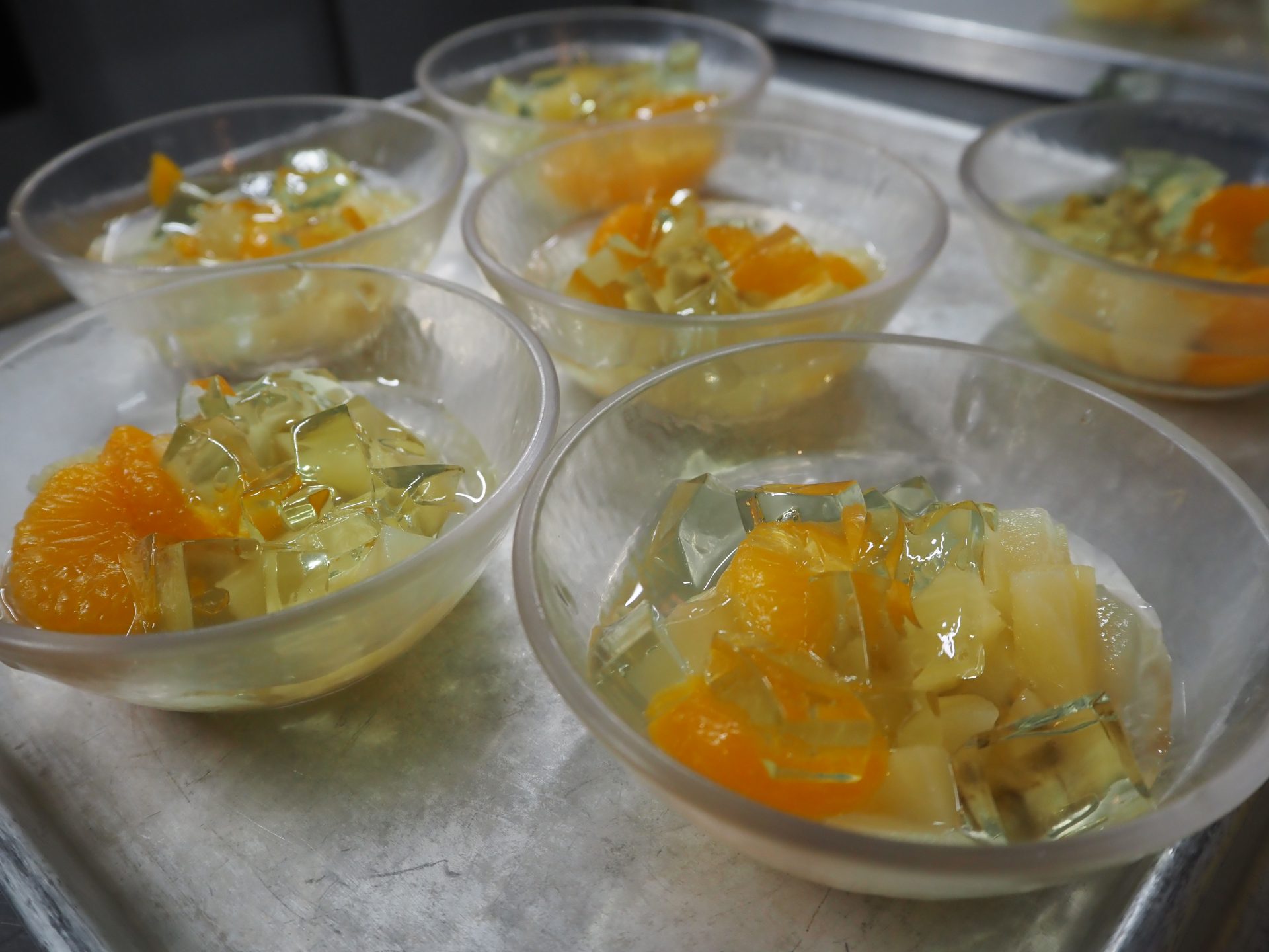麺も茹で上がり、デザートのフルーツポンチもおいしそう❤