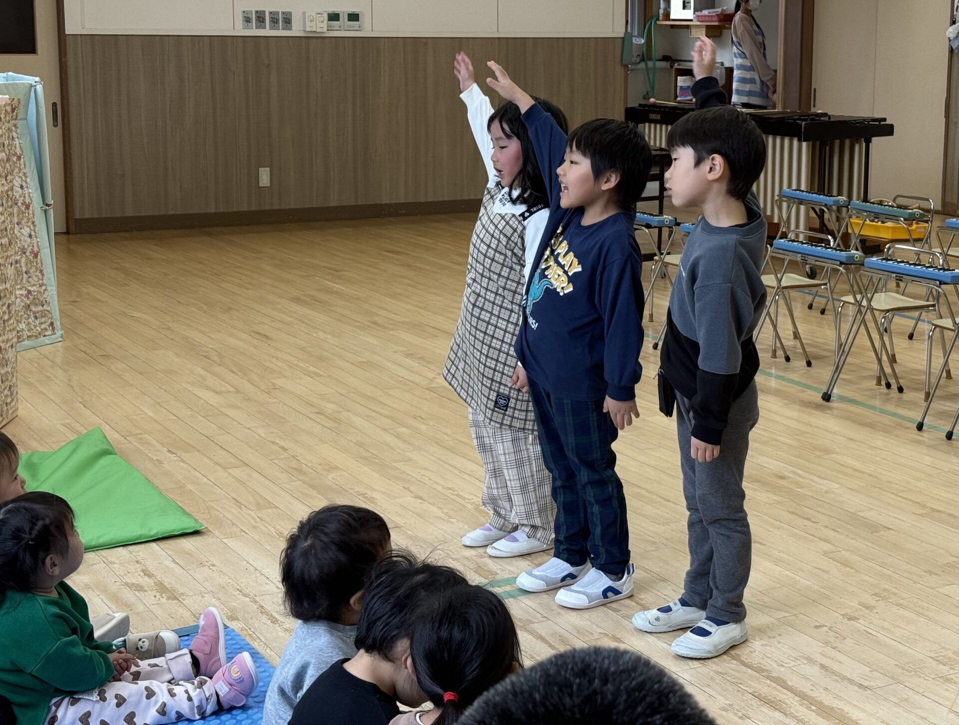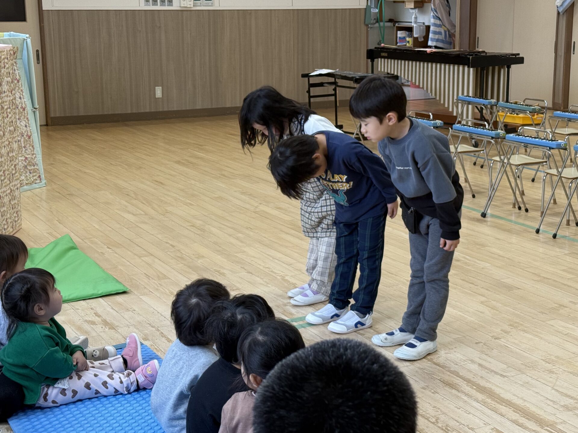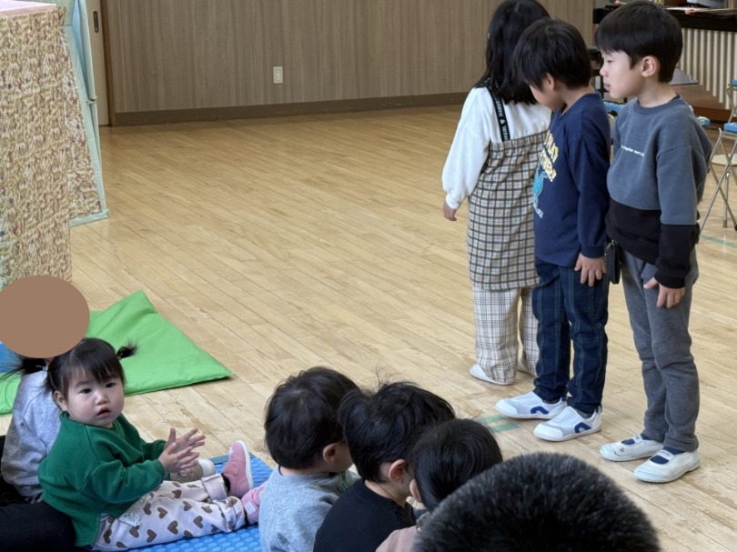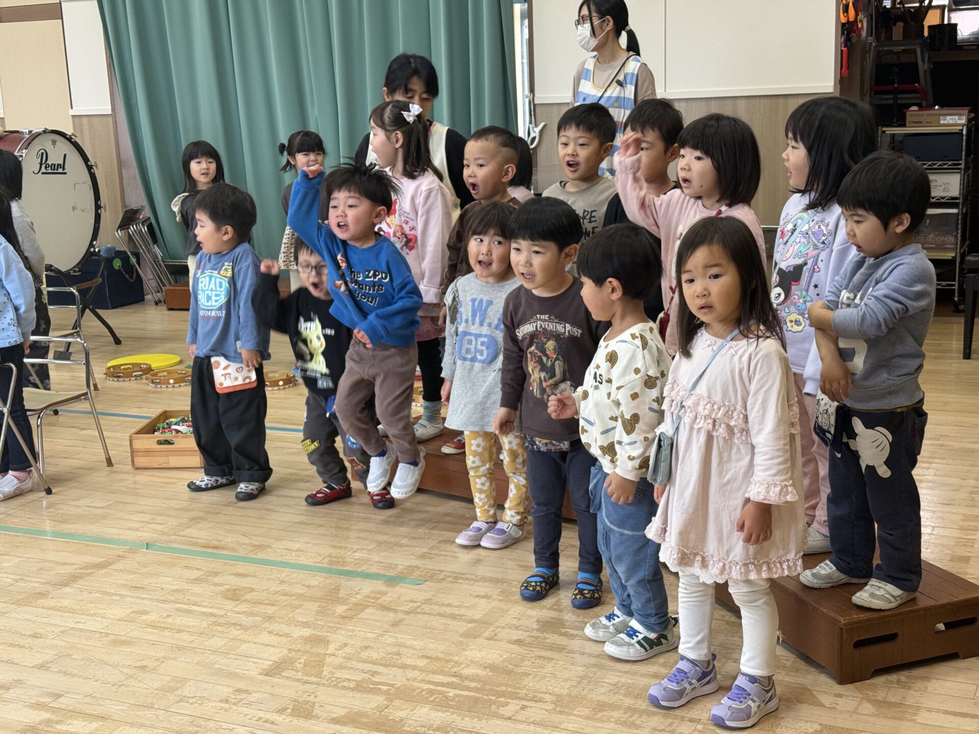 今日は、昨日の音楽発表会を見ることができなかった未満児さんと先生のために、ミニ音楽発表会が開催されました😊