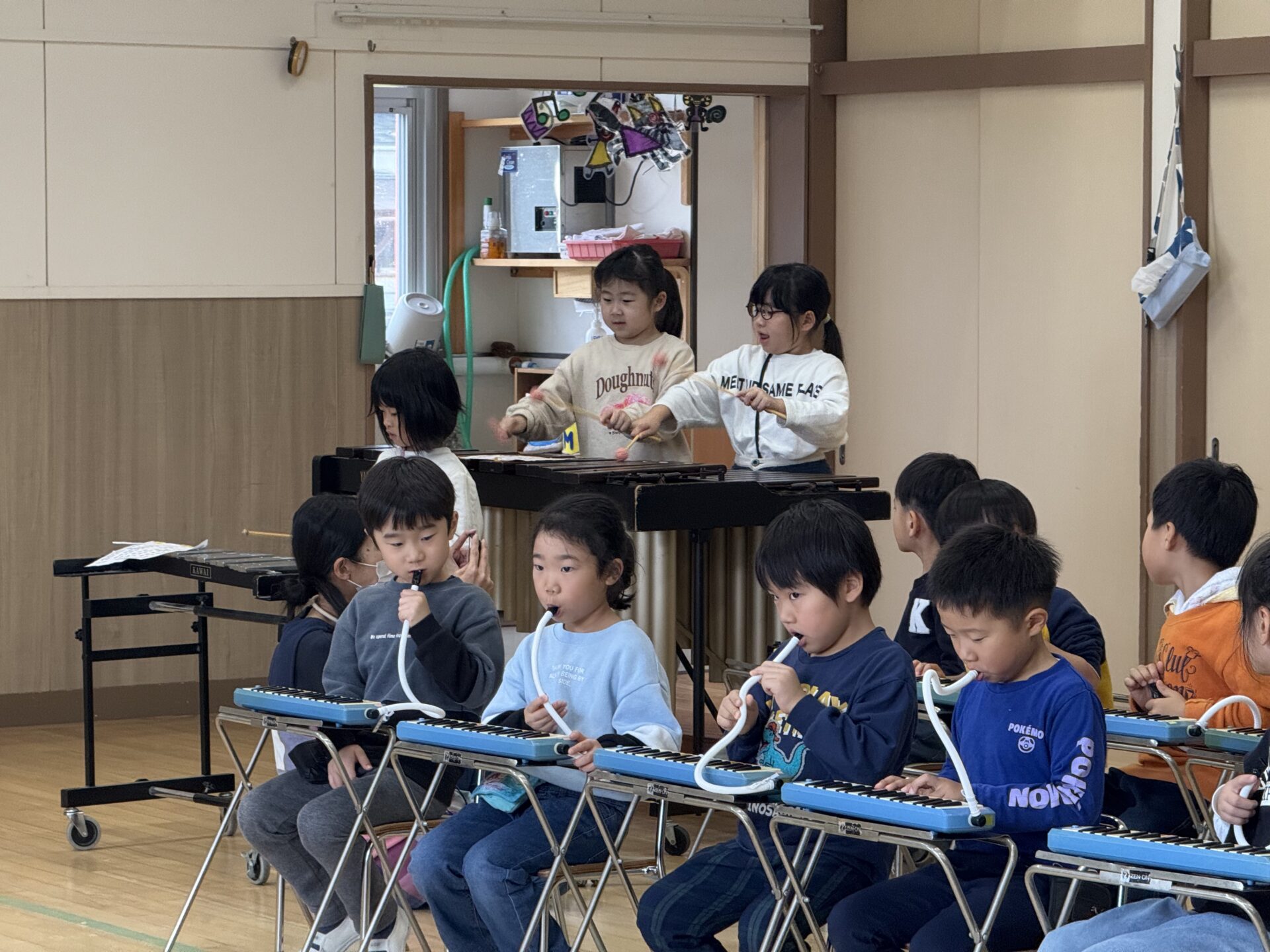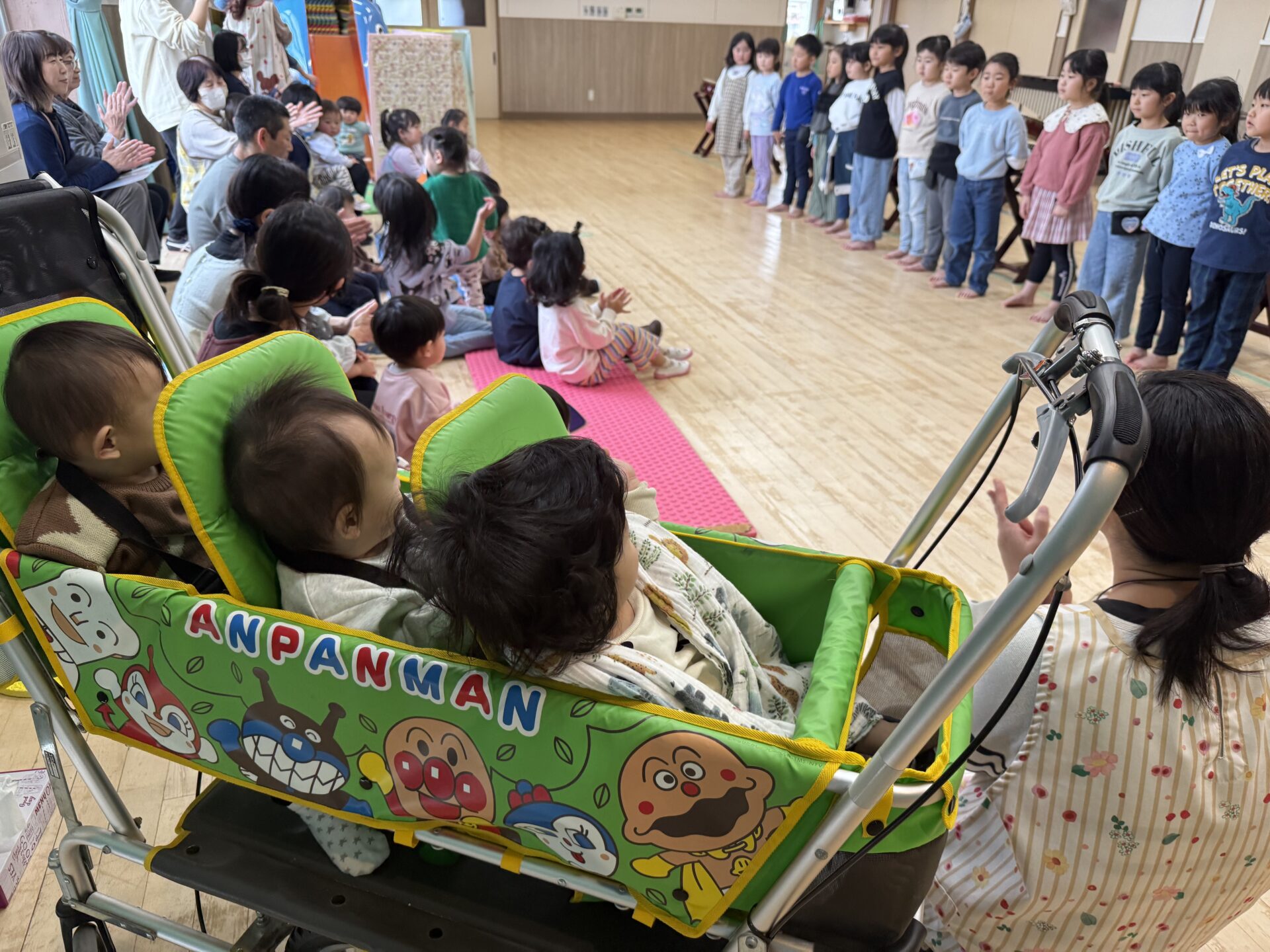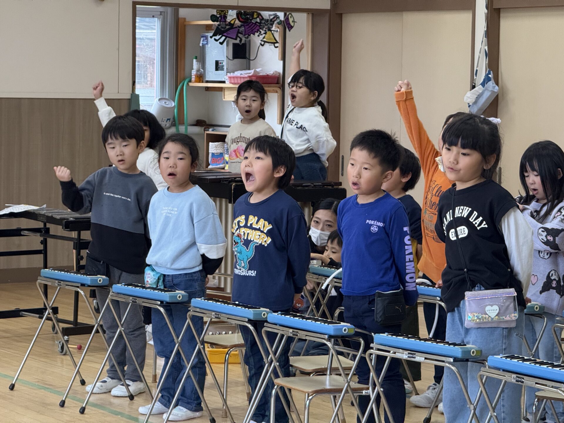 今日は、昨日の音楽発表会を見ることができなかった未満児さんと先生のために、ミニ音楽発表会が開催されました😊