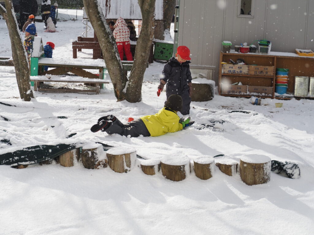 強めの雪が降ってきてもお構いなしの子ども達! さすがは風の子