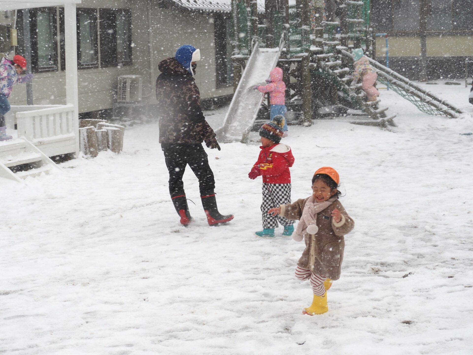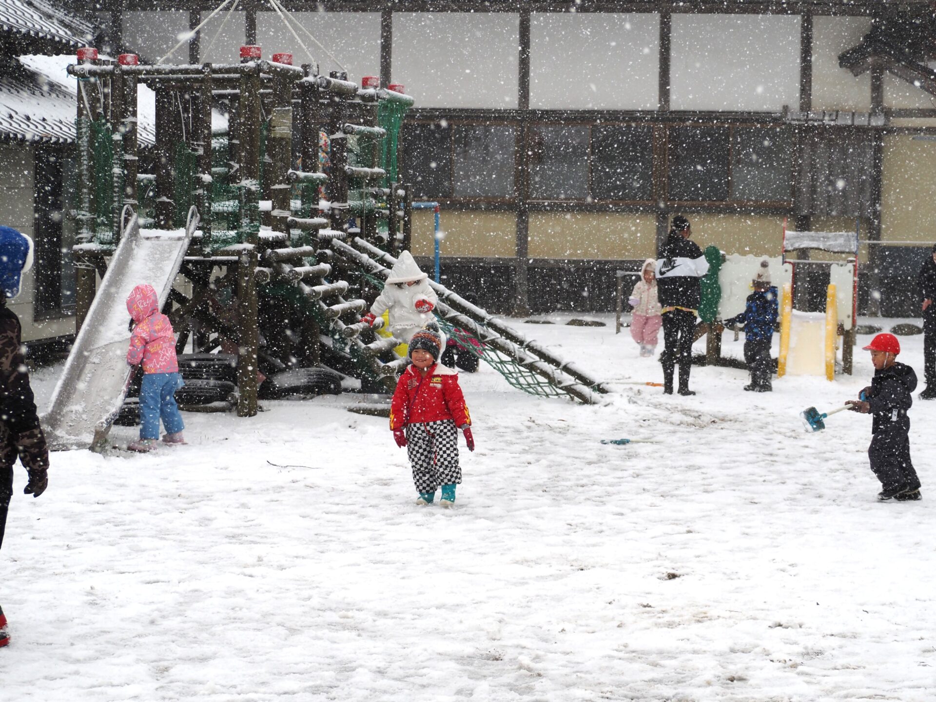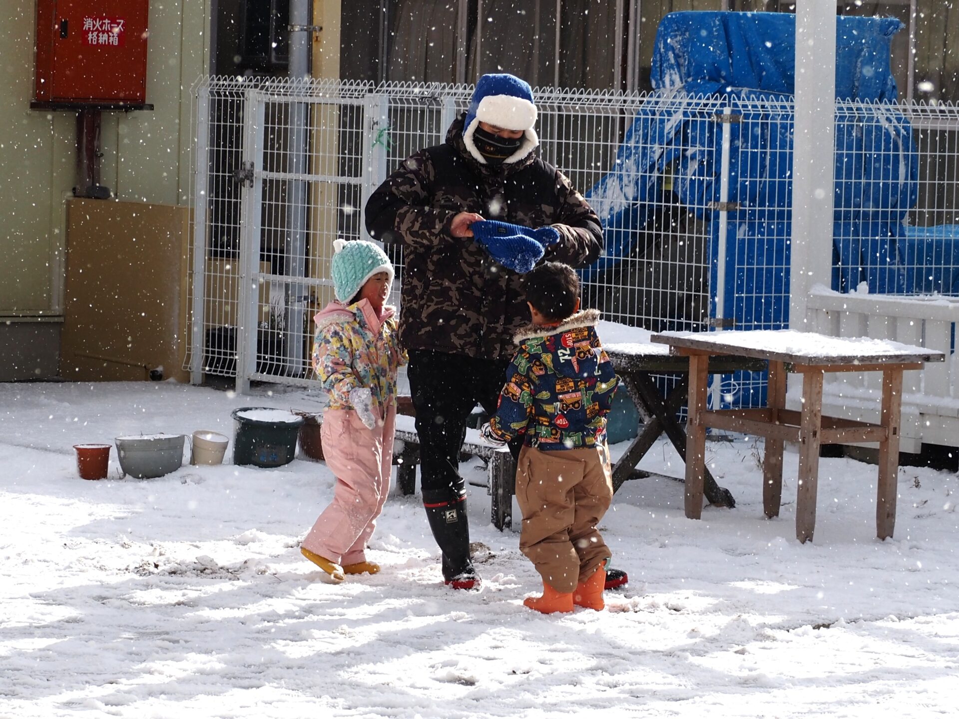 強めの雪が降ってきてもお構いなしの子ども達! さすがは風の子