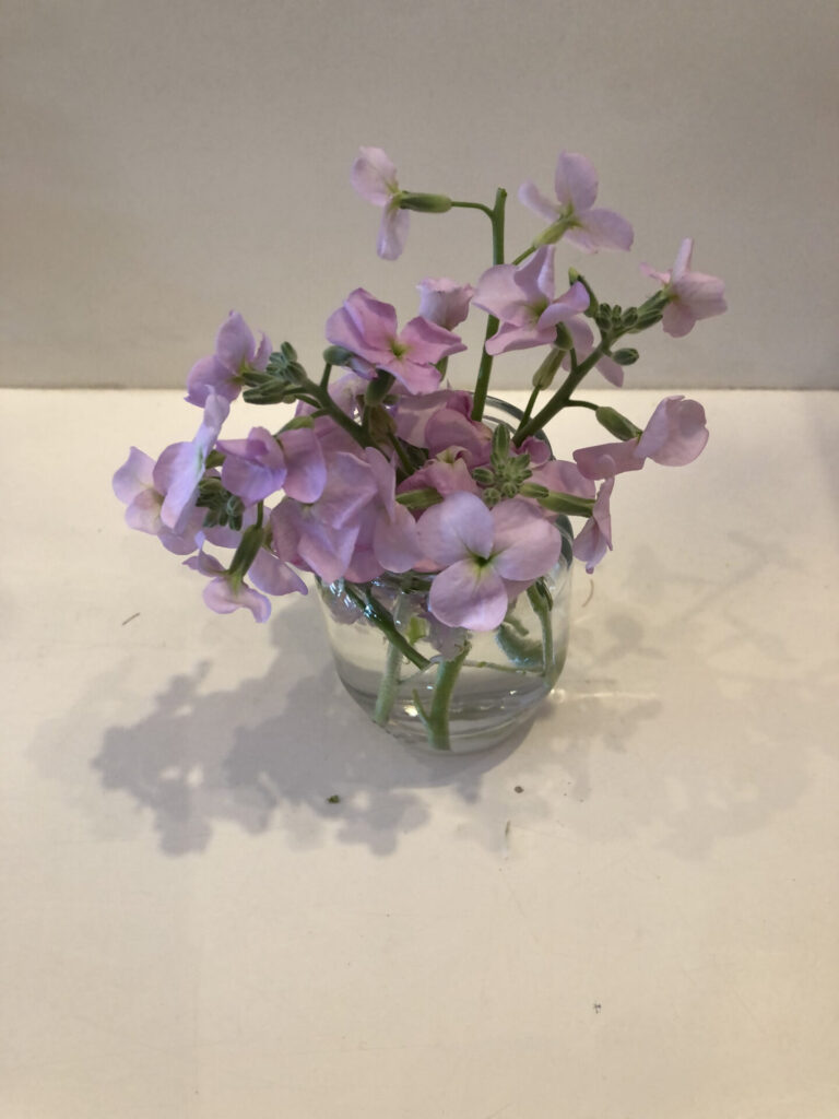 皆のおかげできれいなストックの花で玄関が華やかになりました。