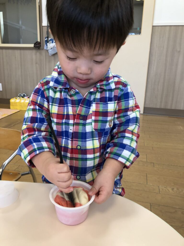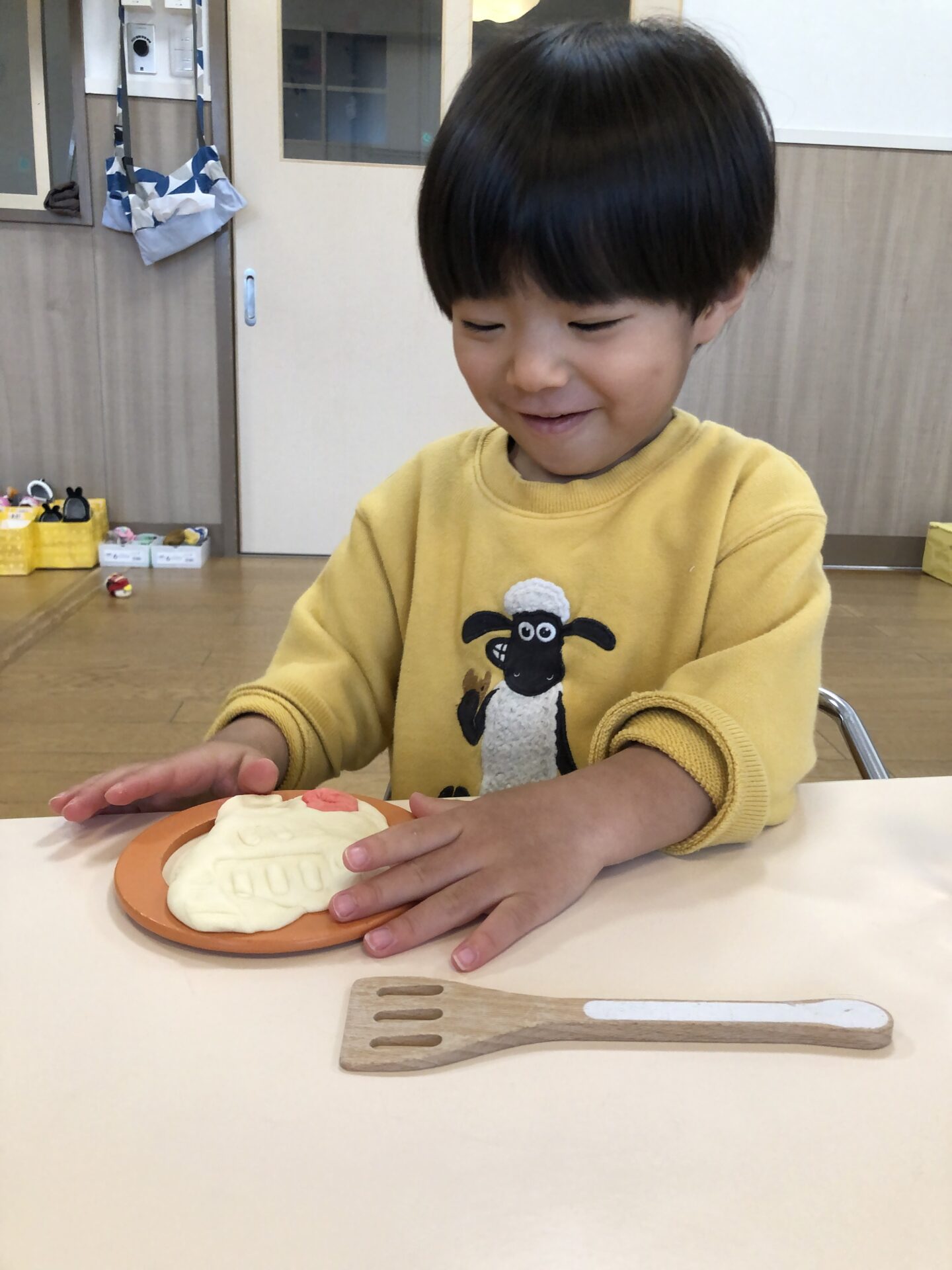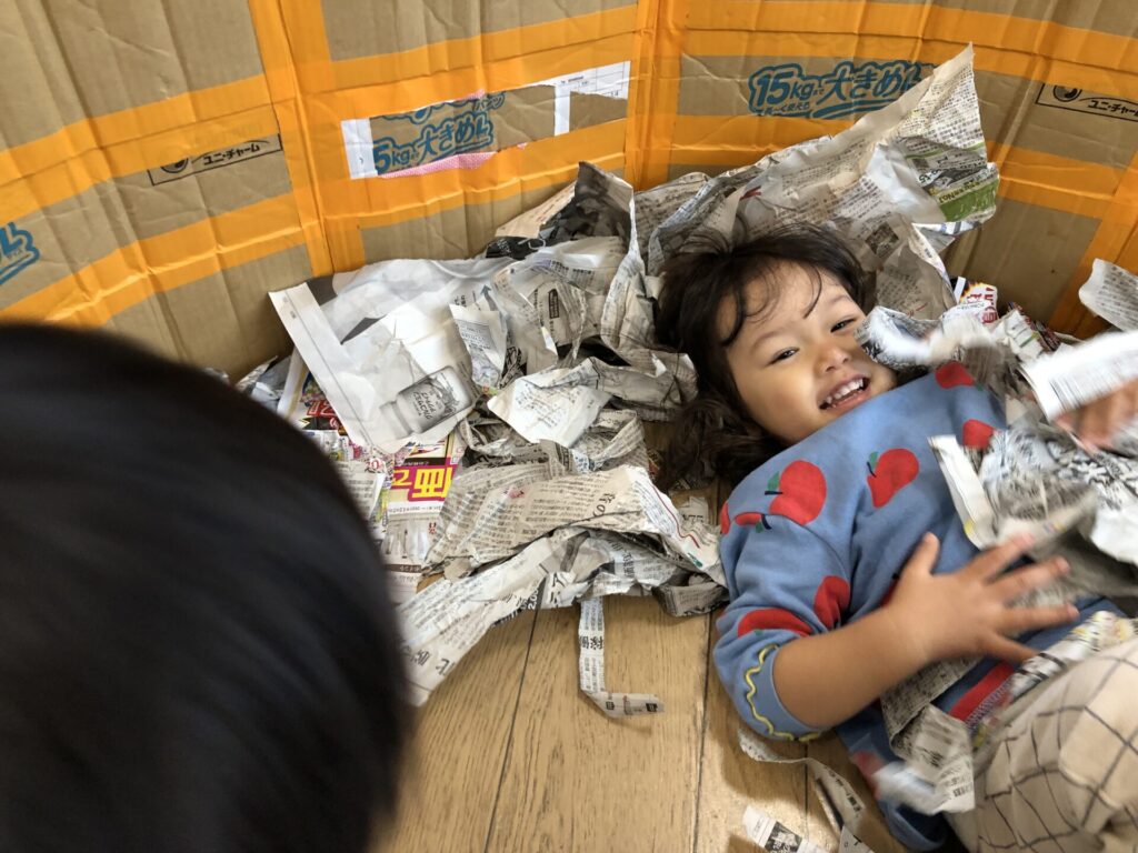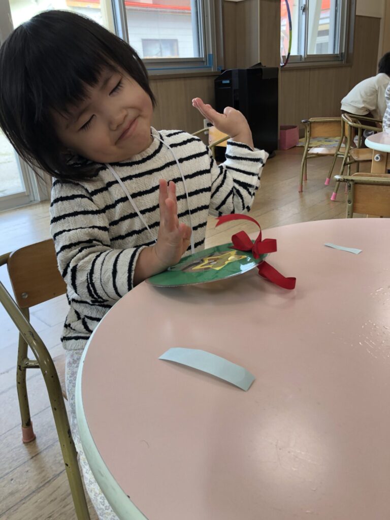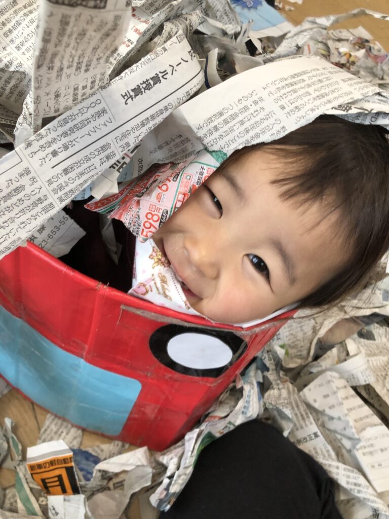 指先を使った遊びをたくさん楽しんでいます☺ まずは小麦粉粘土遊び! たくさんこねたり、丸めたりお皿に入れたり、色を混ぜたりして遊んでいます♪ 新聞遊び☆ ビリビリ破いたり、新聞の中にごろんと寝転んだり、集めたりして楽しんでいます☆ シールを貼って、クリスマスのツリーやリースを製作中! 台紙からシールを上手にはがしてペタペタ貼って完成です☺ 指先を上手く使いながら、色々な遊びを楽しんでいます☺