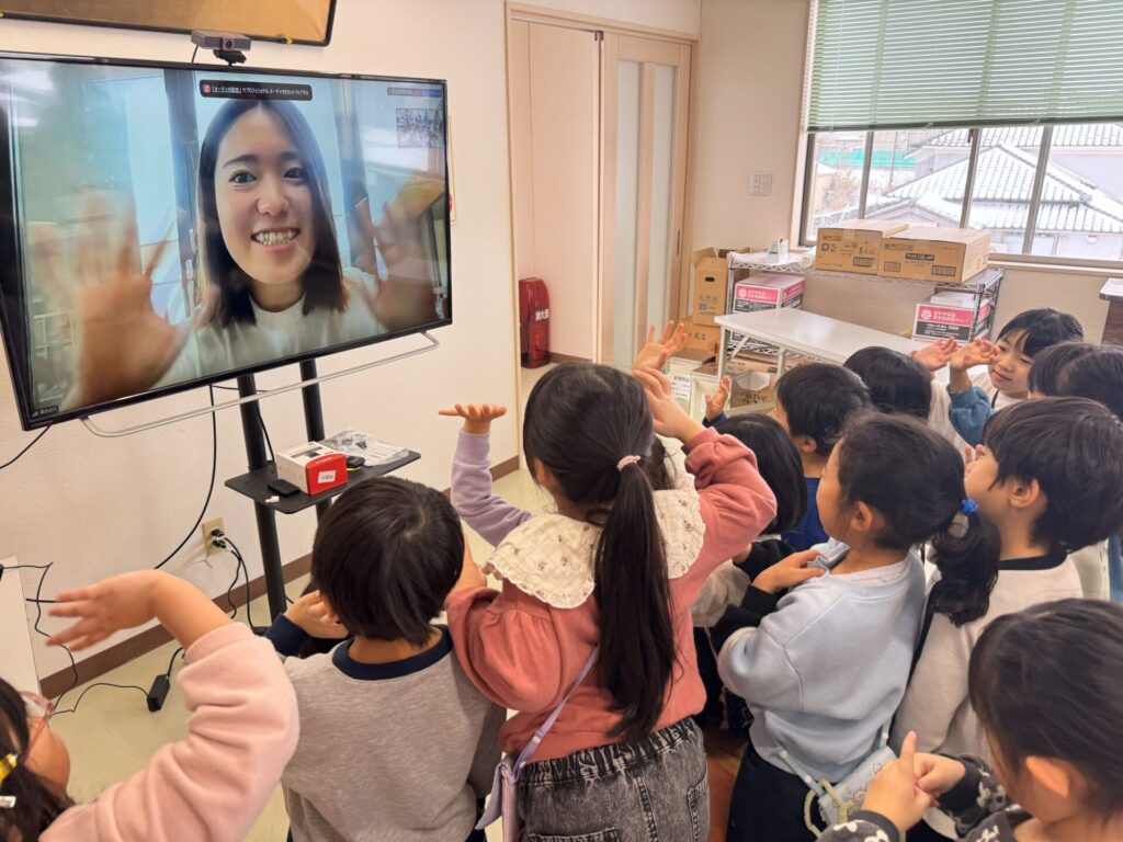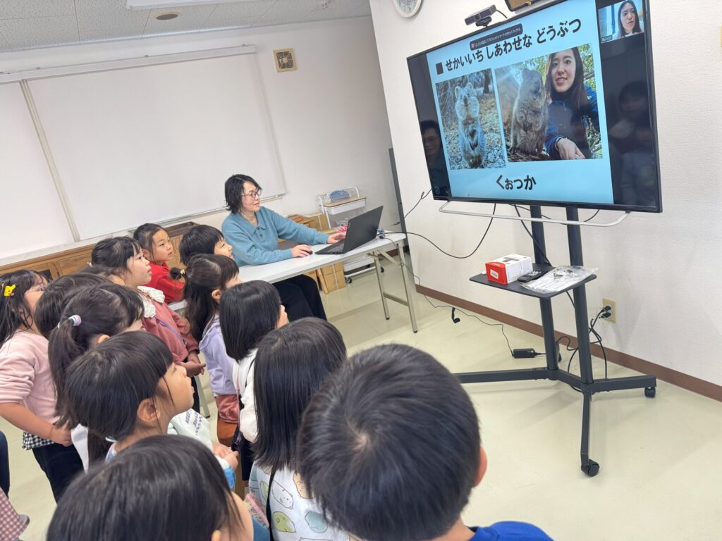 以前広野保育園に勤務して下さっていた森みのり先生とZOOMを繋ぎ、オーストラリアから子ども達に色々な面白い話を教えていただきました!