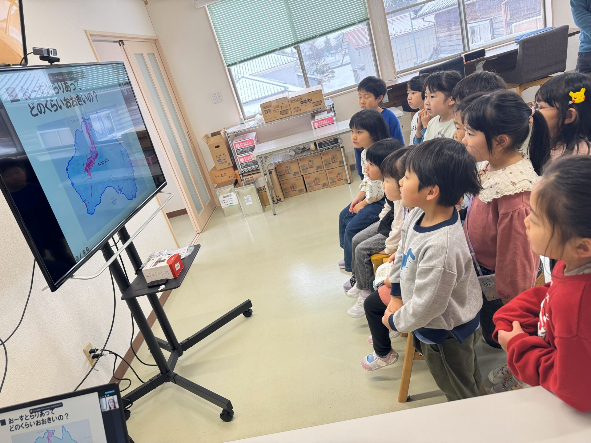 楽しみに迎えた当日、登園してすぐ!「今日みのり先生とオーストラリアからお話しするよね!」「家でオーストラリアの事調べてきた!」など、なんと予習もバッチリな子ども達😳