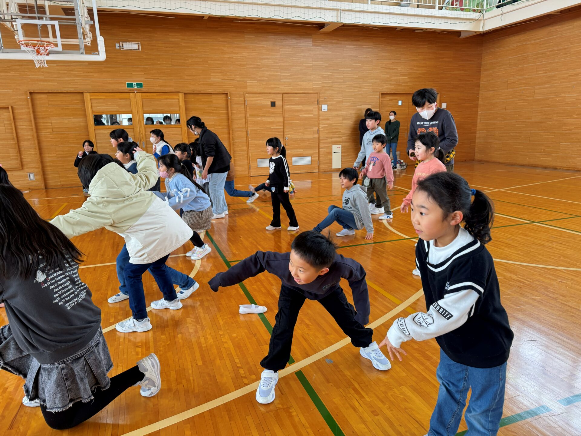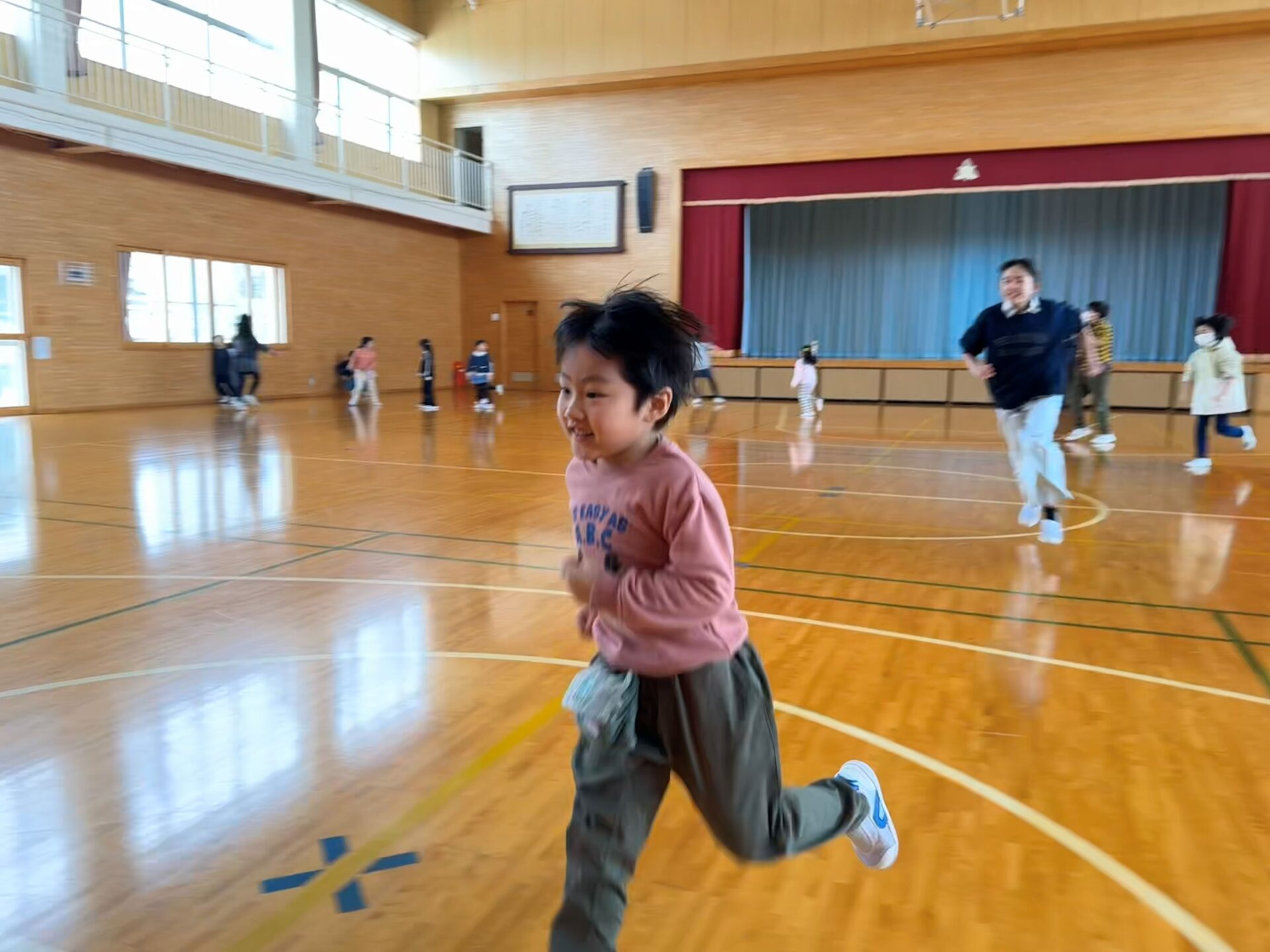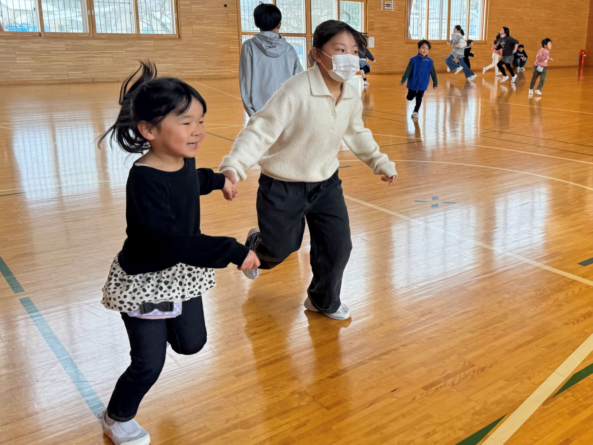 最後は体育館で、こおり鬼やだるまさんの一日などルールを教えてもらいながら一緒に体を動かして楽しんでいました。距離も縮まり一緒に手を繋いで仲良く遊ぶ様子もありました☺️