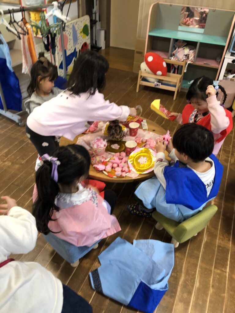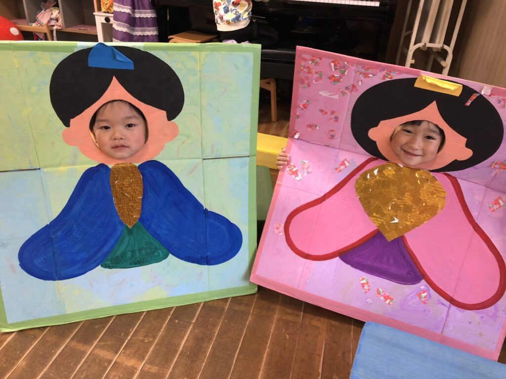 みんなひなまつりの雰囲気を楽しんでいます🌸3月3日のひなまつりが今から待ち遠しいですね😊