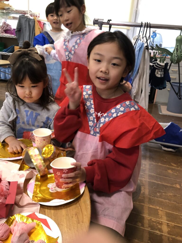 来週の3月3日は、いよいよひなまつり🎎😊✨こども園のひな人形も子ども達が飾ってくれました🎎 竹組さんはひな人形制作や、ひなあられのふるまいごっこを楽しんでいます✨素敵な衣装を着て、すっかり気分はおひなさまおだいりさまかな😊❓