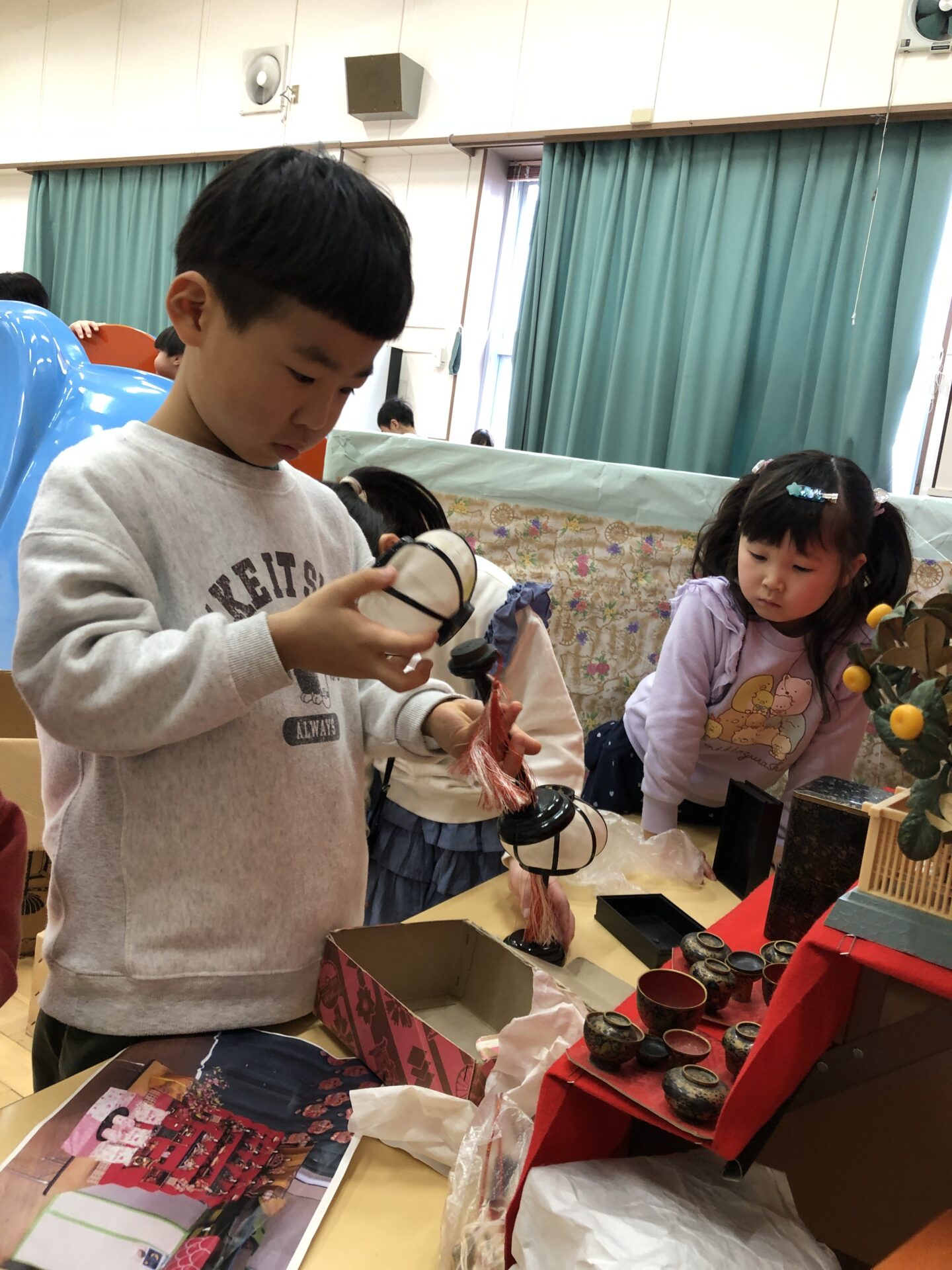 みんなひなまつりの雰囲気を楽しんでいます🌸3月3日のひなまつりが今から待ち遠しいですね😊