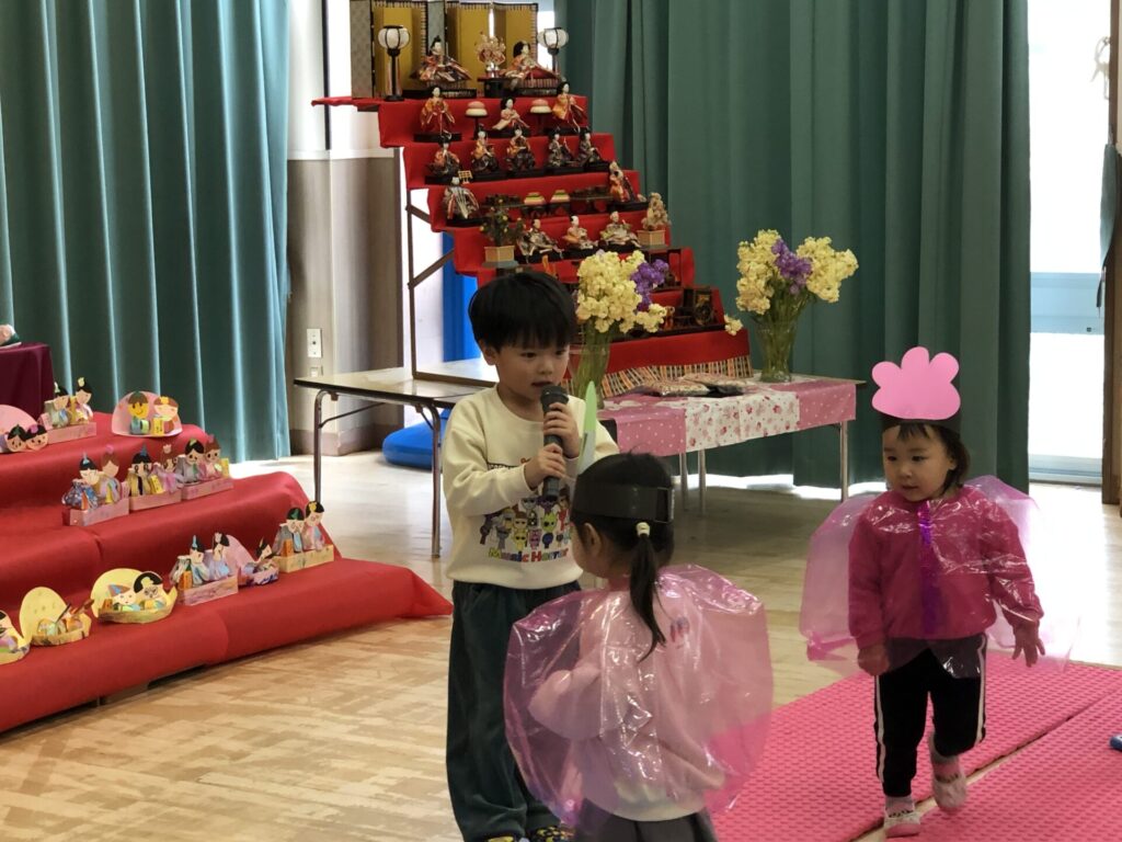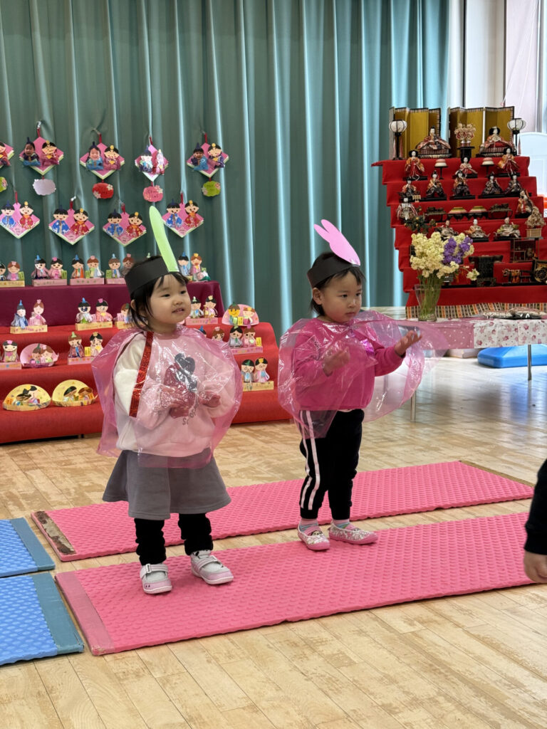 今日はひなまつりのお祝いということで、♪うれしいひなまつり の曲に合わせて松組がとっても素敵な遊戯を披露してくれました♪