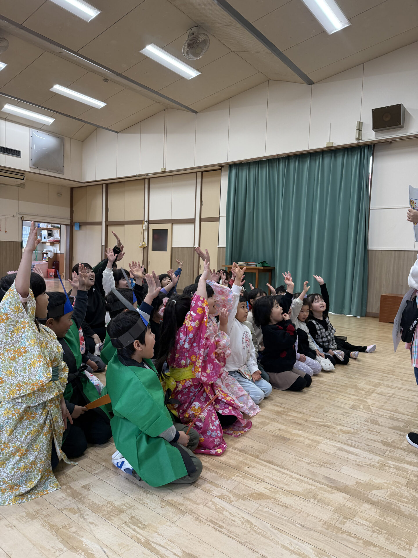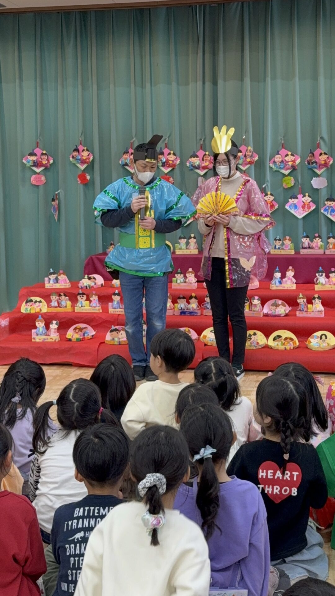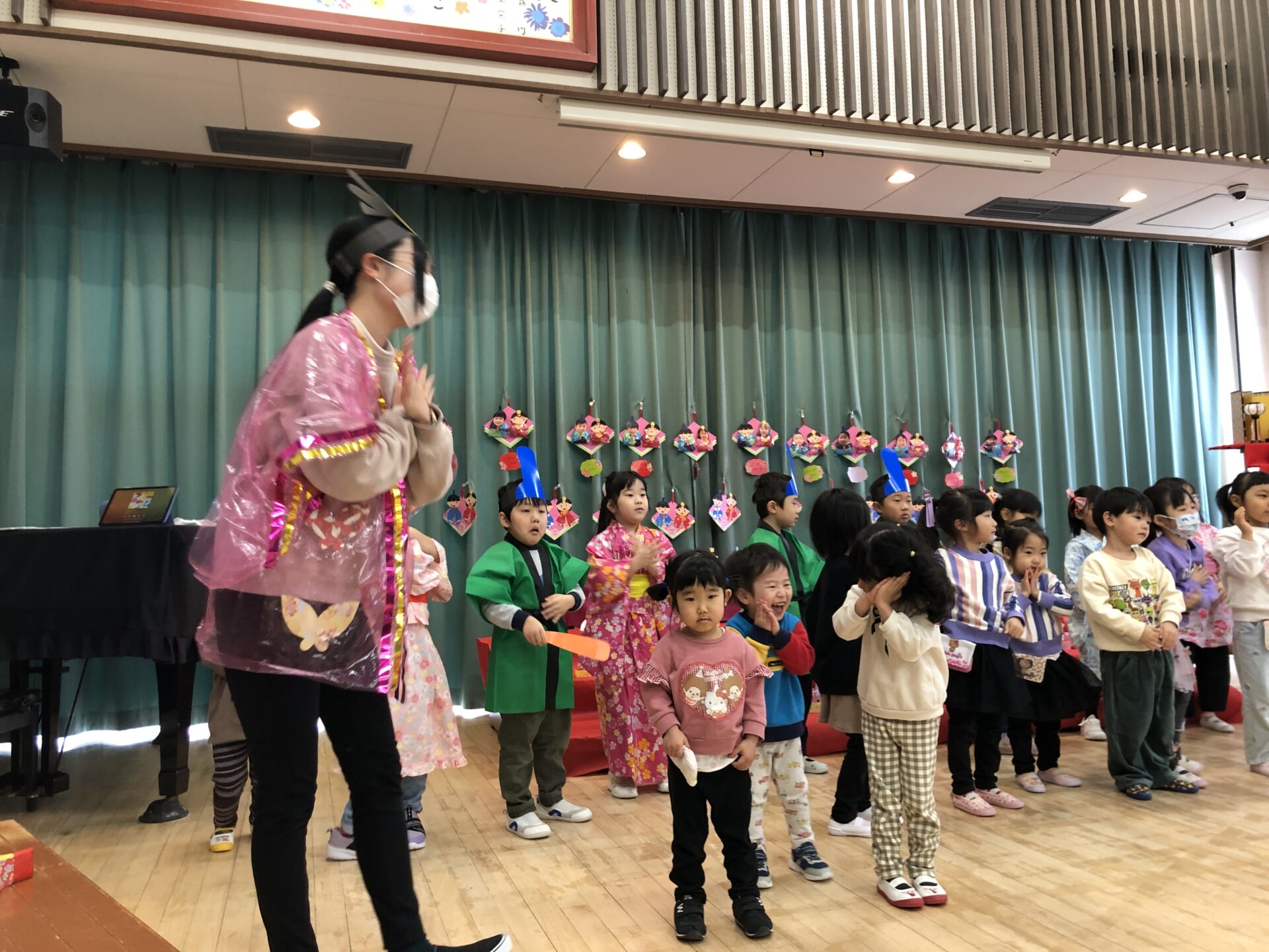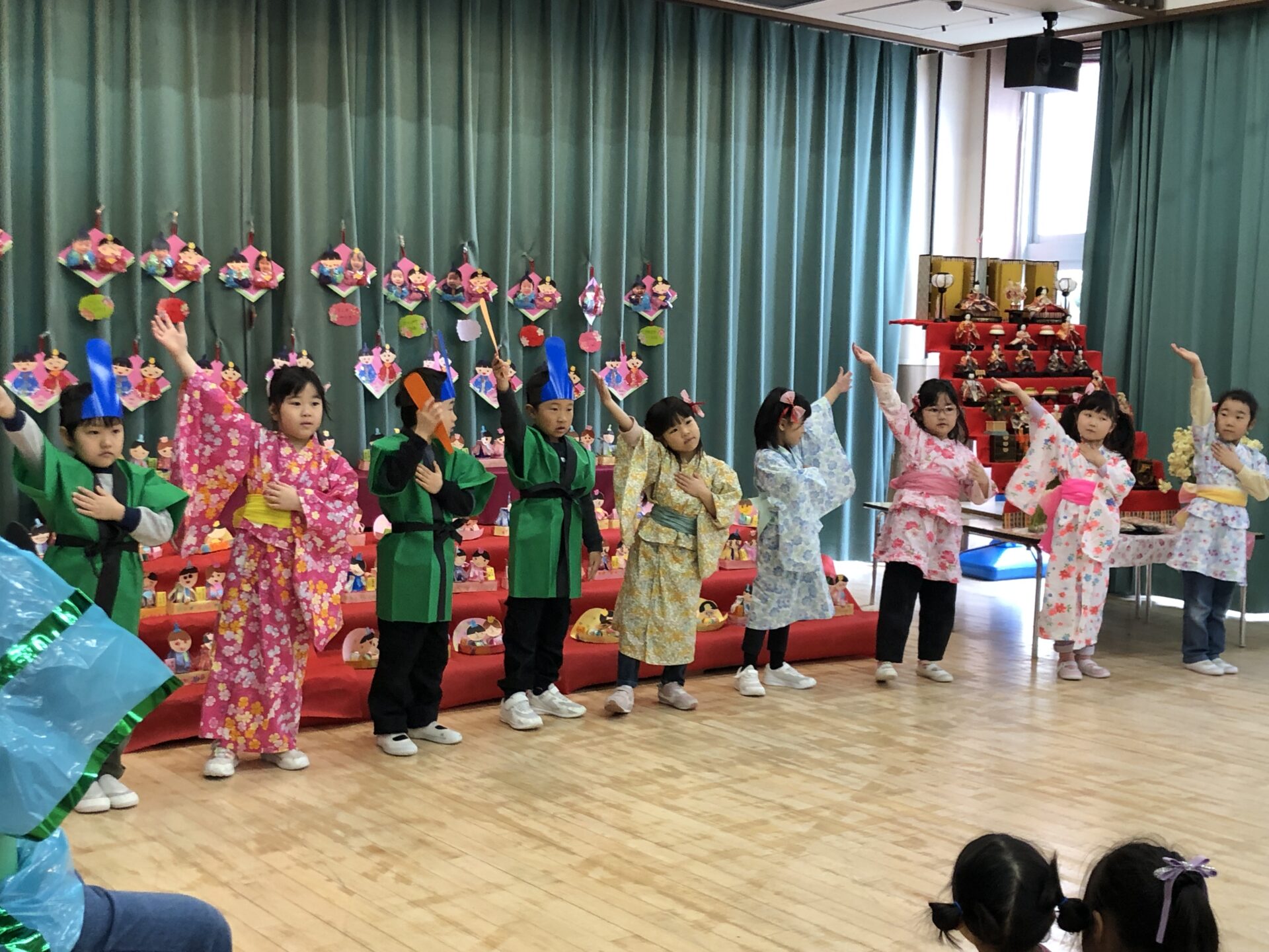 松組の遊戯を見たら、竹組、梅組、桜組も踊りたくなってウズウズ♪お雛様、お内裏様も加わりにぎやかな発表になりました。