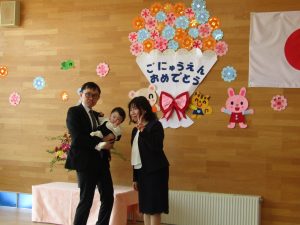 入園したお友達の名前が呼び上げられると、「はい‼」と上手にお返事してくれました。